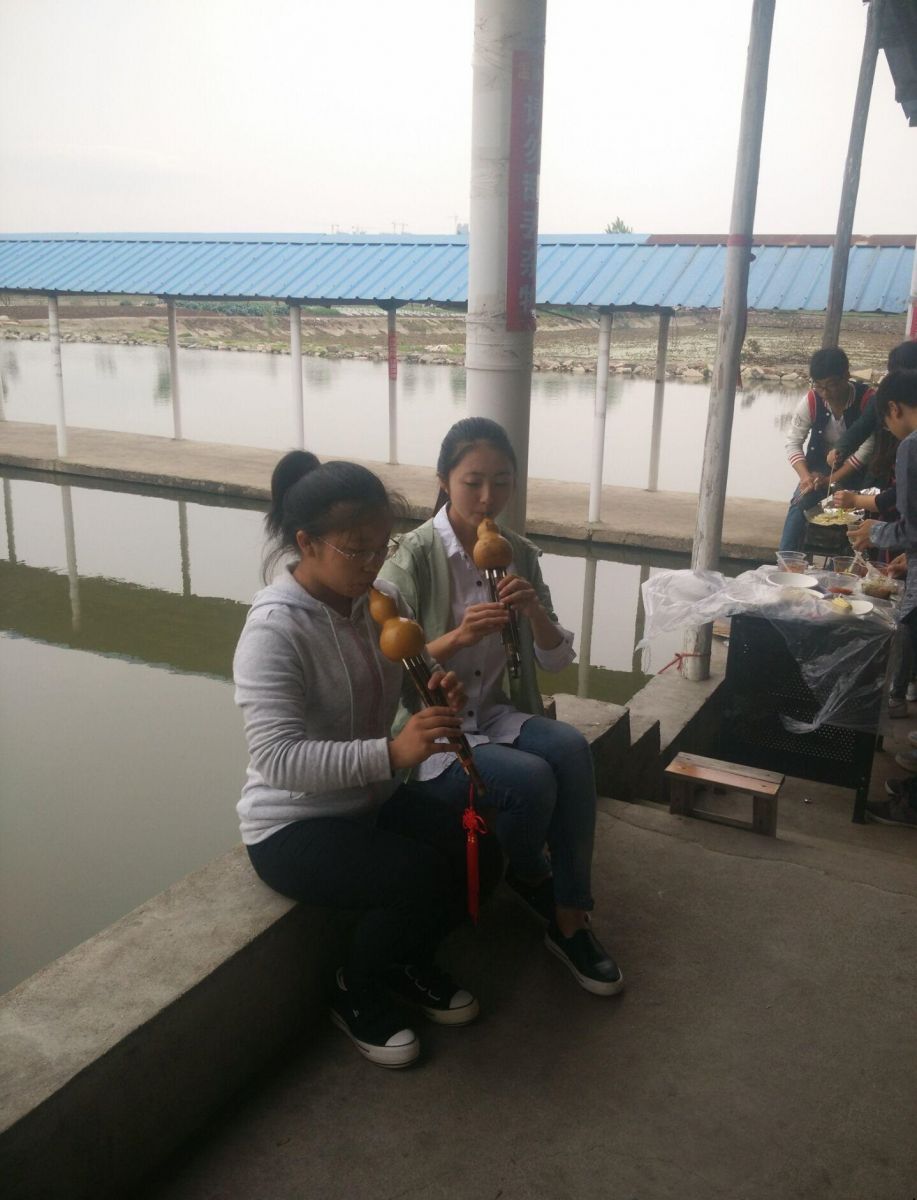 当日清晨,笛箫协会的成员在指导老师姚绍营的带领下,乘车前往采风地点武汉农家乐。一路上车中欢声笑语不断,一改往日“低头族”的场景,大家都在开心地互动,相互进行着小游戏。不一会儿就到了活动地点,所有人有序地放置好各自的物品,然后在农家乐屋外的平地上开始了乐器交流活动,竹笛音的清脆,葫芦丝乐曲的婉转,洞箫的低沉,所有的乐音在整个场地环绕。先是由葫芦丝组的“葫芦娃”们表演了一曲《傣乡月色》,将傣族风情完美展现,之后笛子组的“小竹子”们也给大家演奏了一曲《春到湘江》,十分应景,洞箫组的同学在场地上吹奏了一曲《超越时空的思念》,让人想到了童年看过的《犬夜叉》。最后姚老师对所有的演奏进行了点评,并教授了大家吹奏乐器的一些小技巧,比如怎样稳定气息,怎样让吹出来的音色好听等等。为了奖励同学们积极的热情和认真的练习,最后姚老师用葫芦丝演奏了一曲《青花瓷》,“素胚勾勒出青花笔锋浓转淡……”大家在一旁跟着乐音哼唱起来。