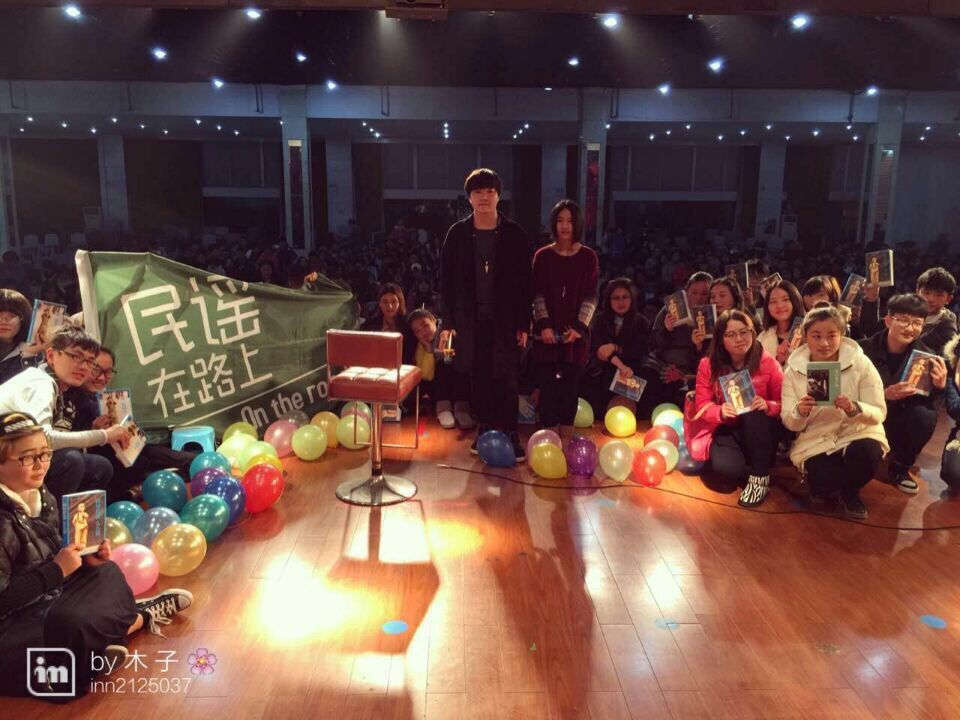 接着出场的宋钊以幽默的风格控制全场,和同学们热情互动,让陷入小不点歌声中的他们回归现实,气氛又一次被带向高潮。他结合自己的故事讲述着曾经流浪的经历,话语幽默风趣。“白色的风,黑色的梦,我只出现在下雪的冬。”一根根琴弦被拨动着,歌声里带着沧桑,但更多的是一种对生活的激情与渴望。