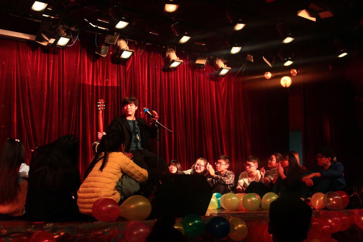 唱聊会开始,全场座无虚席,还有不少外校的同学参与其中,同学们手拿荧光棒,热切期待着他们的精彩表演。在主持人精彩的介绍下,伴随着热烈的掌声,t他们出现在舞台上,整个活动现场的气氛十分火热。为了增加与同学们的互动,邀请了20多名同学与他们一起,分享属于他们的时光,温馨的环境,无形中拉近了与同学们之间的距离。