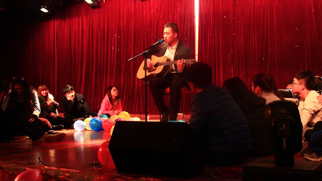 团委网12月11日消息 (雷思铭、韩露 报道)2015年12月11日晚,由武昌理工学院社团联合会以及新媒体中心联合主办的百城百校唱聊会在我校大学生活动中心三楼拉开帷幕,宋钊(小S)、陈昕宇(小不点)担任演唱嘉宾。
