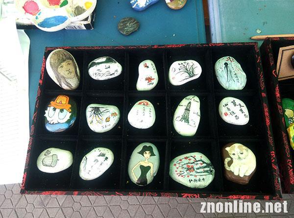 据悉,活动期间,同学们都能免费使用由石玩协会免费提供的石子与颜料,同时石玩协会还专门将协会里珍藏的彩绘石子带到现场供同学欣赏、学习。一个个石子上有着形形色色的图案,有动物、人物、山水等。29日下午,参赛选手制药工程系的包圆强同学完成了一个彩绘石头,他高兴地说道:“此次比赛连材料都不需要我们准备,就可以直接参与了。真的是非常方便,虽然自己画的不怎么样,但活动让我在炎热的天气里静下心来,收获还是蛮大的!”几位参赛选手耐心地围在一个小桌上,挑选着形状各异的石头,并一笔一划地勾勒着自己想要的图案。在石玩协会三名成员的指导下,参赛者一个个地完成了自己的作品。最后,大家不仅可以拿走自己刻画的作品,优秀作品还有机会获得其他奖品。