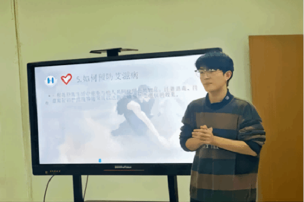 活动伊始,主持人以幽默风趣的互动提问方式,对大家进行艾滋病知识的科普。分别讲解了什么是艾滋病、艾滋病的传播途径、症状与危害以及如何正确对待艾滋病病人和预防艾滋病。接着,主持人将在场人员分为正反辩论方、观众三个小组,进行主题为“艾滋病更该被视为医学问题还是社会问题”的小组辩论赛。正反双方经过热火朝天的讨论,理清辩论思路,在A4纸写下组员的核心观点,再由正方双方代表进行观点表述。正方代表表示,艾滋病对社会的危害巨大,对社会的发展造成了不可估量的消极影响,所以艾滋病应被视为社会问题。反方代表表示,艾滋病的定义是医学定义,本质是医学,所以艾滋病应被视为医学问题。双方辩手你来我往,互不相让。最终,在现场观众的举手表决下,正方的观点“艾滋病更应被视为社会问题”获得胜利。紧接着,主持人带领大家进行“达芬奇密码”游戏,以抢答的方式,回答有关艾滋病的相关知识。游戏环节,同学们踊跃参与,现场气氛被点燃。最后,此次青春健康同伴社“青春无艾,健康同行”主题同伴教育活动在艾滋病知识视频科普下落下帷幕。