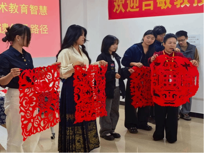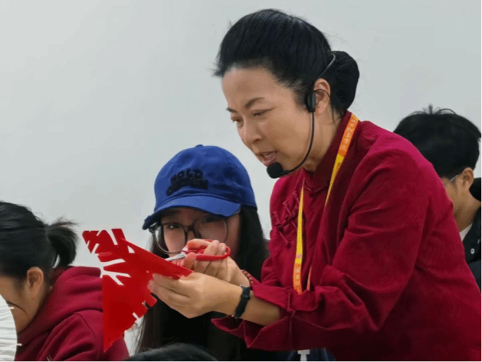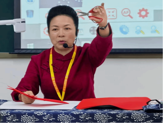 在互动环节,参与者在吕教授指导下体验剪纸创作。吕教授以“慢工出细活”理念耐心引导急躁同学,并分享初学趣事拉近距离。她采用“精准示范+轻松互动”教学法,精准示范让学生掌握剪纸要领,轻松互动让学生敢于尝试与展示。作品展示时,吕教授对照优秀作品点评,创作者分享心得,学生在交流中提升创作能力,感受剪纸艺术细节之美。
