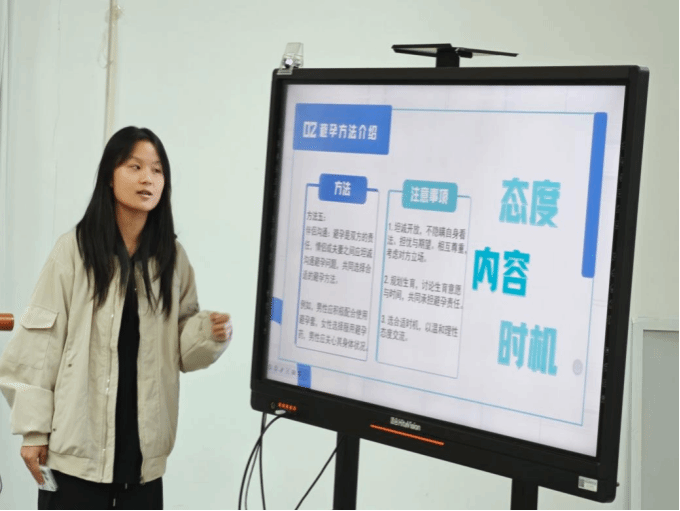 活动伊始,青春健康同伴社的活动主讲人师雨萱首先围绕“青春”“责任”“健康”三大核心关键词,清晰阐述活动目的、内容与流程。她提到,青春是个人三观塑造的关键阶段,随着生理成熟与社交圈拓展,青年对情感与亲密关系的探索需求逐渐提升,但不少人在健康性知识、科学避孕方法上存在认知误区。“追求学业进步的同时,守护身心安康同样重要。科学避孕不仅是必备的生命健康知识,更是对自己、对他人负责的重要体现。”陈妍的话语恳切有力,为活动奠定理性且温暖的基调。