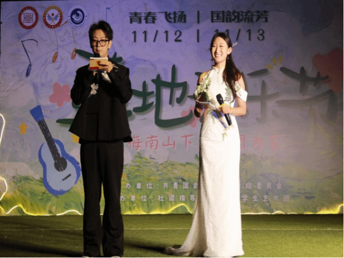 活动伊始,两位主持人向现场观众致以诚挚的问候,并宣布“青春飞扬,国韵流芳”草地音乐节正式开始。主持人介绍道,本次活动得到了包括大学生艺术团、复贤国学社、FOD街舞协会、武术协会等多个社团的积极响应与参与。本次为期两天的音乐节将通过丰富多彩的文艺表演传承和弘扬中华优秀传统文化,丰富校园文化生活,并为学生提供一个展示自我的广阔平台。首日活动以“国风”为主题,还将通过趣味互动环节如词语接龙、方言版眼色游戏等让参与者在互动中展示自我、沉浸式体验传统文化魅力,感受古韵之美。