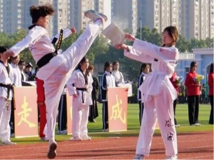 开幕式中各协会带来的精彩表演成为关注焦点。伊炫国标协会一曲《兰亭序》将古典韵味与国标风情巧妙融合,舞姿雅致灵动,拉丁舞与旗袍融合表演引全场瞩目。舞者们身着典雅旗袍,却踏出热情奔放的恰恰、伦巴舞步。东西方美学的碰撞在传统服饰的含蓄与现代舞姿的张力间达成奇妙平衡,为观众带来一场视觉与文化交融的盛宴,充分展现了艺术创新的无限可能。风魄跆拳道协会表演者登场,一袭白衣,挺拔如松,炯炯有神,高超技艺赢得阵阵欢呼。特技节目《霍元甲》中,队员们腾空而起,腿法凌厉,准确踢碎木板,每一次击破都引发现场热烈反响,充分展现了力量、速度与精神的完美结合。
