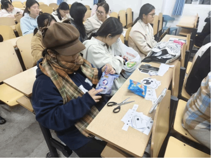 活动伊始,指尖手工坊协会会长刘禹漩向到场学生介绍了本次活动的意义与内容。她表示:“手工艺不仅是技艺的传承,更是文化记忆的延续。在现代生活节奏加快的今天,我们希望通过亲手制作,让同学们感受慢工出细活的匠人精神,体会每一件手工艺品背后承载的历史与情感。”她指出,社团始终秉持物尽其用的原则,力求以小物料成本实现大创意价值,这与传统匠人精神内核相契合。刘社长还特别提到,本次活动精选了剪纸、编绳、陶艺、布艺四项具有代表性的传统手工艺,并安排了各位会长对参与者进行现场指导,力求在互动中传递文化温度。