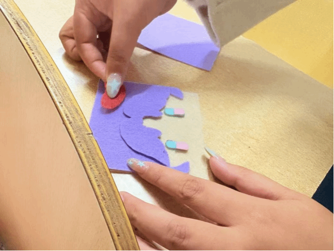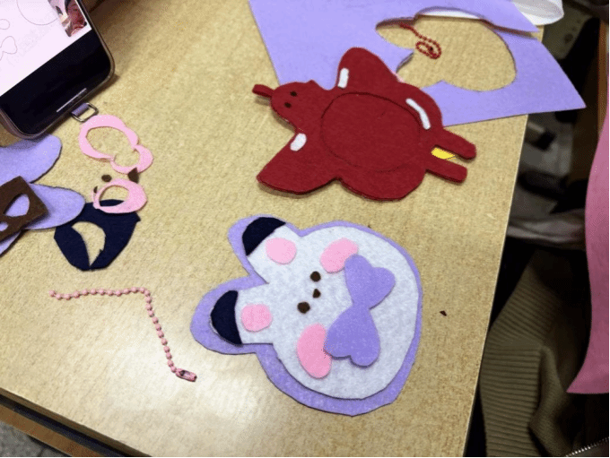 活动中,二十余名参与者领取材料进入自主创作环节,根据个人兴趣选择参照图纸或自由发挥。剪纸区红纸翻飞,图案生动;编绳区彩线交织,寓意吉祥;布艺区针线穿梭,绣出细腻纹样。各位会长耐心讲解步骤、示范技巧,学生在动手过程中不时交流心得。活动还设置了非遗知识问答与作品展示墙,参与者完成作品后签名留念,并写下对传统手工艺传承的祝愿。