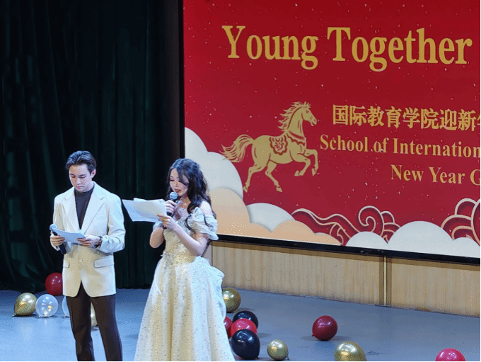 在国际教育学院2026元旦晚会上,NU舞蹈社团的双人舞《You and Me》与梅南北路音乐社的歌曲《You Raise Me Up》成为全场焦点。舞者们以默契十足的肢体语言传递跨国温情,激昂的歌声则引得中外观众同声合唱,瞬间打破语言壁垒。这两个节目不仅为晚会增添了亮色,更搭建起跨文化交流的桥梁,有效增进了中外学子的情谊,为在场师生留下了深刻而温暖的记忆。