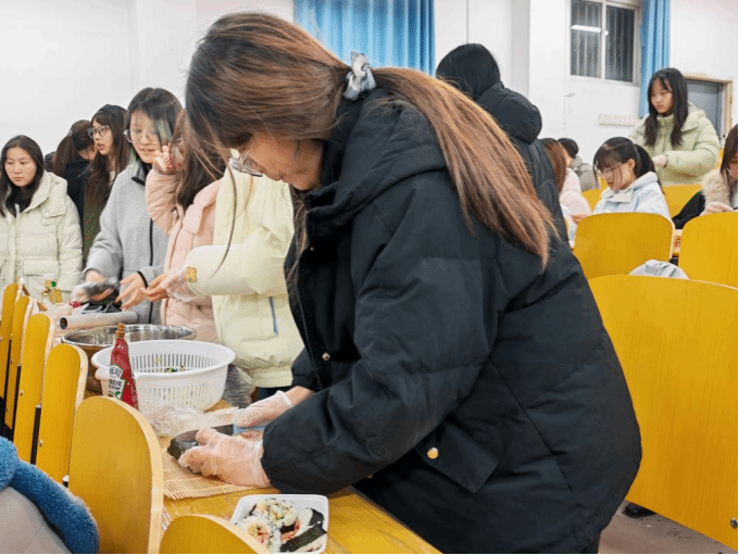 致辞结束后,社团骨干成员将教室划分为寿司制作区、热可可冲泡区与用餐区:日式海报与暖光串灯交相辉映,舒缓的轻音乐循环播放,营造出温馨治愈的迎新氛围。协会此前已线上发布详细流程表、寿司卷制示意图及热可可冲泡指南,并再次提醒安全事项,为活动顺利开展保驾护航。