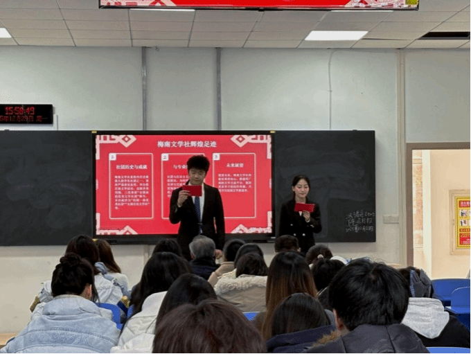 团委网12月30日消息(通讯员 张 熳 曹 成 报道)为表彰第五届诗歌散文小说大赛优秀获奖者,武昌理工学院梅南文学社第五届诗歌散文小说大赛颁奖仪式于2025年12月29日在文法302教室成功举办。本次活动吸引各个学院的学委及获奖同学前来参与,集中展现了武昌理工学子的深厚文学素养与崇高文学追求。