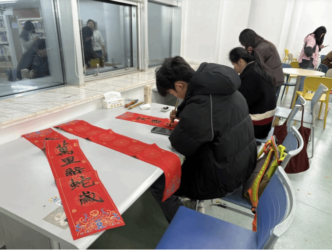 活动尾声,图书馆工作人员推荐了相关古典文学与书法书籍,鼓励现场借阅。书画协会负责人刘紫幸在总结中表示“对联看着简单,其实藏着大学问,是咱们文化自信的小切口。”她强调,书画协会将持续开展此类活动,推动传统文化融入日常校园生活。