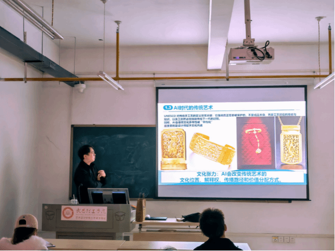 团委网3月26日消息(通讯员 黄为 报道)为共同探讨AI浪潮下传统工艺的传承与创新路径,2025年3月25日14时,武昌理工学院创意设计学院特邀中国地质大学(武汉)珠宝学院博士研究生蒋振宇,在非遗文化馆4楼404学术会议室成功举办了“AI驱动时代的设计与价值重构”主题学术讲座。此次活动由创意设计学院工艺美术系、工艺美术协会联合主办,吸引了众多设计专业师生到场聆听。