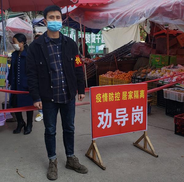 莫兴旺目前值班的劝导岗位于社区搭建的生活市场,人流密集。当问及他为什么选择这个岗位的时候,他答道到:“因为这里需要我。虽然现在正值冬季,但寒冷的天气抵挡不住大家爱国之心的温暖。我坚信没有被禁锢的城,只有不离开的爱。因为我们有爱,所以我们一定能够度过难关。武汉,加油!中国,加油!”