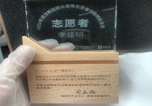 据悉,李佳明参加的志愿者车队刚开始只是小规模的民间组织,因此对于接送医护人员的信息方面掌握不太全面,后来为解决医护人员与志愿者信息线下匹配效率低的问题,风韵出行和高德打车联合推出医护专车通道为医护人员与接送志愿者免费提供信息匹配的平台服务,志愿者们在该平台为武汉医护工作者提供无偿接送服务。而李佳明在该平台上每天接送医护人员的数量均排在武汉市车队志愿者的前20,也正是因为他的奉献,阿里和高德通过风韵出行找到他并给他颁授特别奖章。