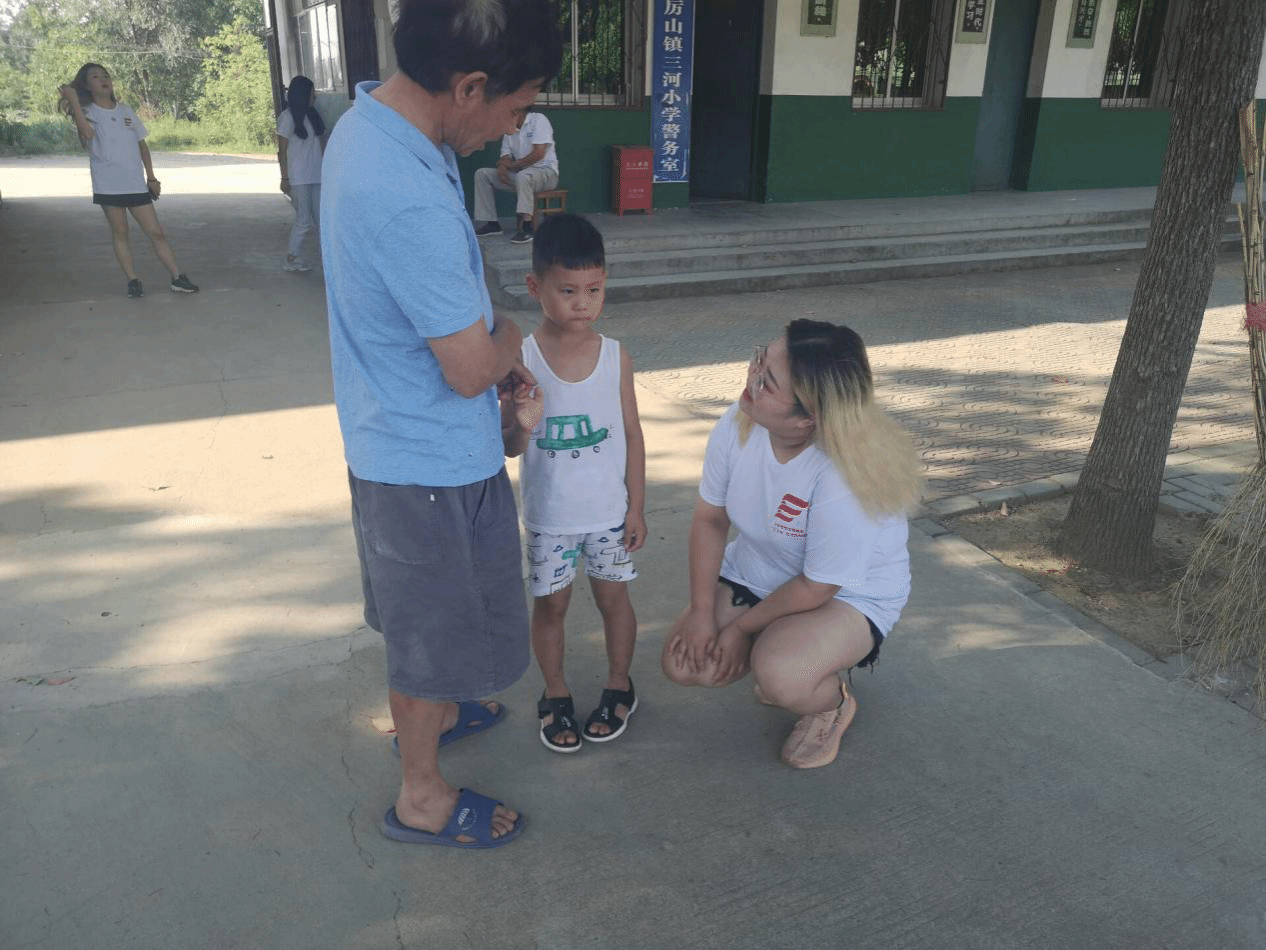随着时间的推移,前往三河小学报名的家长和孩子们越来越多。志愿者在引导孩子们前往教学楼报名的过程中,遇见了一个小男孩正在哭泣,一旁的爷爷表现出很无奈的表情,志愿者看见便急忙放下了手头上的工作,走向小男孩身边,并向爷爷询问小男孩哭泣的原因。志愿者们了解到,由于孩子年龄比较小,性格内向,突然来到了一个陌生的环境让小孩子内心产生恐惧感,以至于不敢跟随志愿者们进入教学楼进行报名。志愿者刘慧芳耐心地与小男孩进行交谈,并向小男孩细心介绍学校所开展的特色课程,在此期间,激发了小男孩的学习兴趣与热情,并向志愿者大胆的交流起来,表示自己很热爱美术。看着孩子羞怯的眼神,志愿者们表示一定会倾尽自己的所能去帮助他们,给予他们更多的自信。