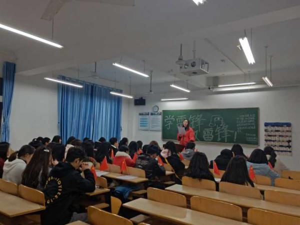 黑板上写着雷锋同志的至理名言:人的生命是有限的,可是,为人民服务是无限的,我要把有限的生命,投入到无限的为人民服务之中去。全班37位同学齐唱《学习雷锋好榜样》这首歌,“学习雷锋好榜样,忠于革命忠于党,爱憎分明不忘本,立场坚定斗志强……” 紧接着,班上同学王毅给大家分享了一些雷锋同志的事迹:雷锋同志的一生是短暂的,但是他身上散发着无限的光芒。主动帮同事拖地打扫卫生,给大嫂和她的孩子买票,部队发衣服,他只要一套,穿打了无数个补丁的衣服,袜子破了很多洞也舍不得扔,缝缝补补。聂欣欣告诉大家,雷锋同志最大的愿望就是见到毛主席,他在1959年10月的一篇日记中写道:“昨天我听到一位从北京开积极分子代表大会回来的同志作报告。他说,毛主席在北京接见了他们,……当时,我的心高兴得要蹦出来。”其实,雷锋同志曾经的确是有机会见到毛主席的,可惜雷锋同志直到去世都不知道。王卓在班上分享回答道:我放寒假回家的路上帮环卫奶奶把别人扔地上的烟头捡起来,然环卫奶奶感到特别欣慰。