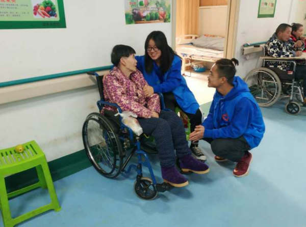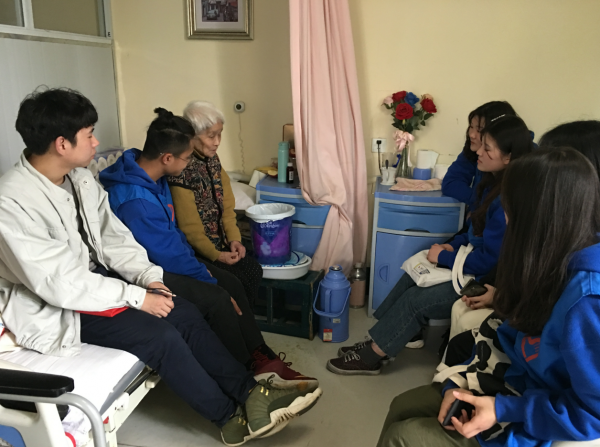志愿者们分为三个小队,每一队都去响应的楼层看望老人们,给老人们带来温暖。活动开始后,志愿者们纷纷前往不同的楼层。老人们见到同学们都展开笑颜,欢迎同学们的到来。在活动过程中,同学们陪老人聊天,给老人唱歌,在养老院中,欢声笑语,其乐融融,同学们做一些力所能及的事情,尽量帮助老人们,让老人们舒心。在此期间,老人们追忆过去的事情,有些老人说及情动时,情不自禁的落下了泪。其中,有一位奶奶为同学讲解着人生的道理,“为什么挑扁担的人肩膀要高一些?”“因为压力越大,肩膀就要抬的更向上些。”这位奶奶用形象化的语言让同学们领悟面对压力该去如何做。奶奶说:“面对困难就像这个挑扁担的人一样,压力越大,越要抗住。”这位奶奶用人生的经历告诫同学们面对困难应该如何去做。