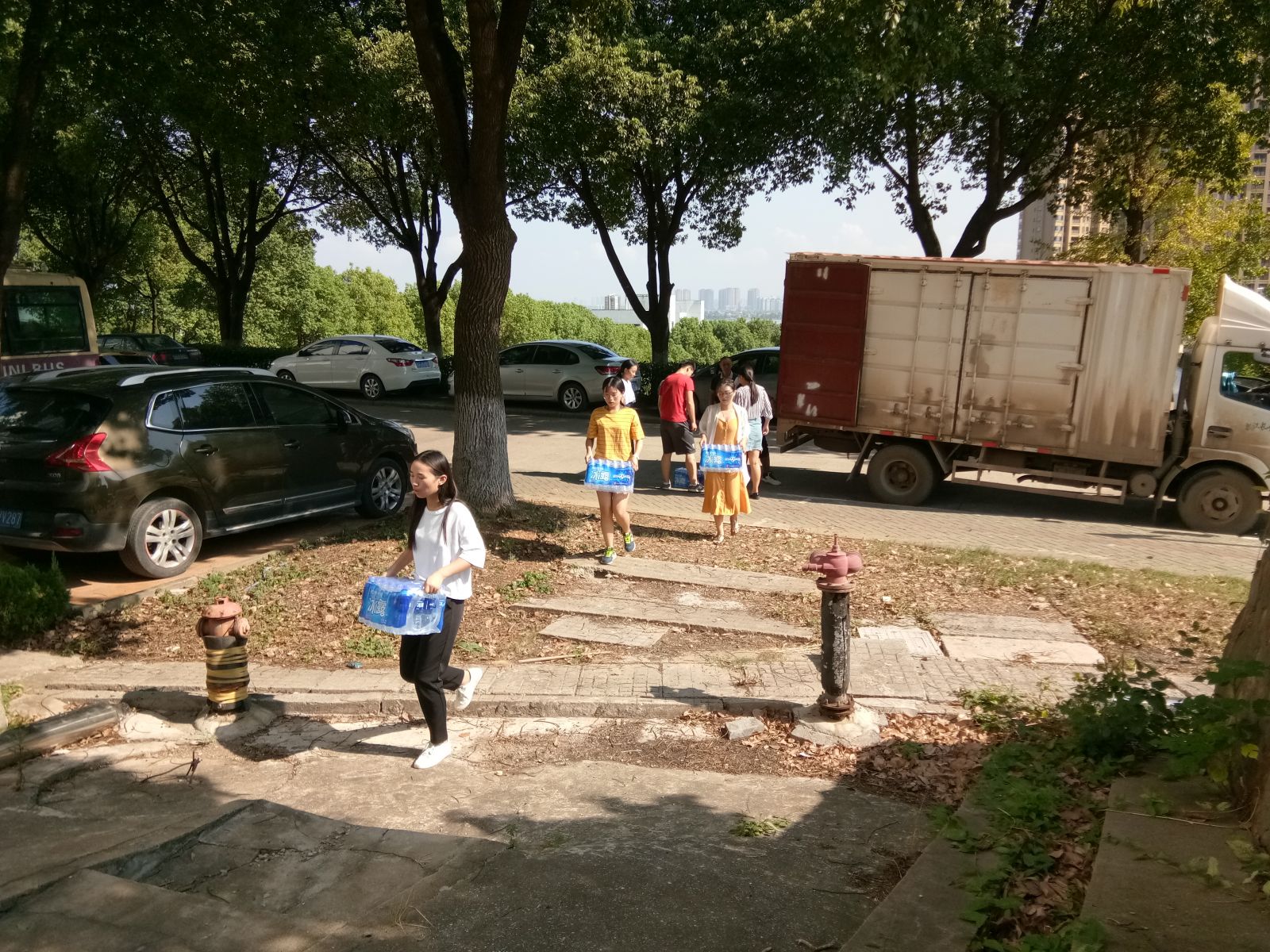 8月29日上午8点,我校校团委指导老师古丽米热等一行校领导亲临物资搬运现场指导工作,此外,校团委副书记张妍、朱侨带着12名主席团干部早早来到搬运物资现场参与迎新准备。在场的学生干部们在得到物资管理的负责人的具体工作安排后,便迅速进入工作状态、开始忙碌的工作。在搬运中,涉及到的物资有矿泉水和新的桌椅,到场的校团委学生干部中有9名女生和5名男生,其间,每个人都忙碌地搬运物资,不分男女能力、不分物资轻重,彼此不时搭手互助。人人抱着一提矿泉水,一个接着一个的从卡车旁走向储物室,再从储物室回到卡车旁,形成了一条长长的搬运队伍。随着时间推移,气温不断升高,但学生干部们并没有停下手中的工作,依然满怀热情忙碌地来回搬运。