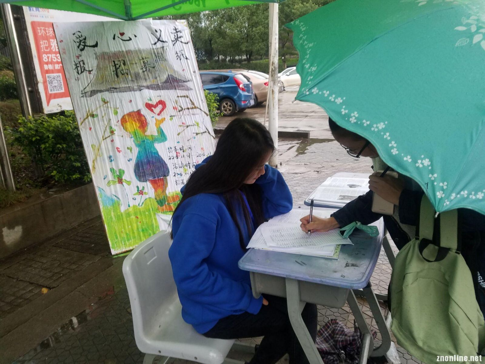 团委网11月7日消息(通讯员 张紫卉 报道)11月7日,武汉天气巨变,骤降十度。武昌理工学院青年志愿者协会的同学们依然顶着风雨,在文化长廊搭起帐篷,为义务卖报活动招募志愿者。