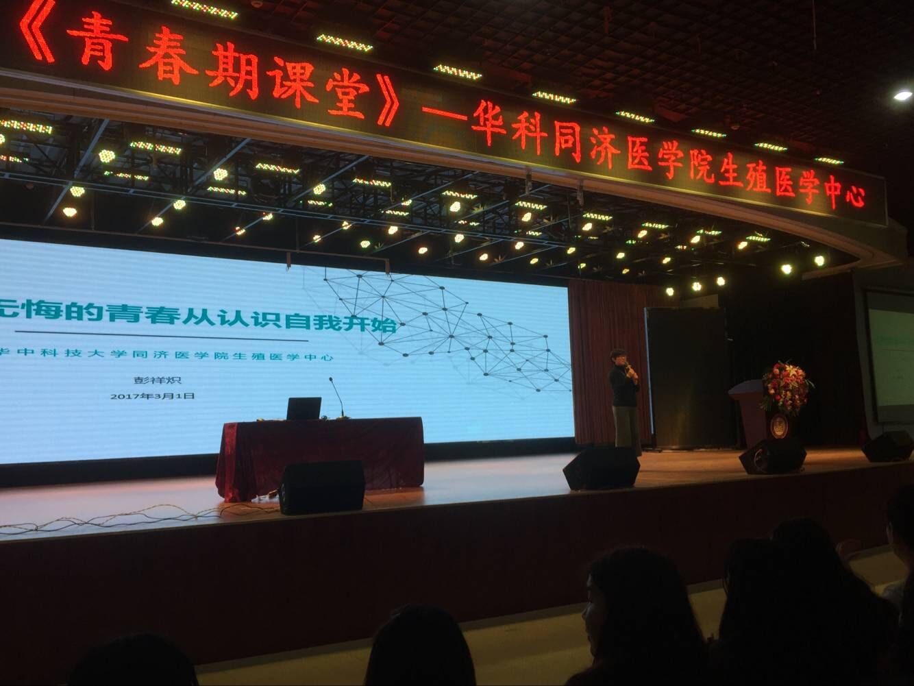 摘要:2017年3月1日下午18点,华中科技大学同济医学院生殖医学中心医学博士彭祥炽主任到我校主题宣讲暨“青春期课堂”活动在武昌理工学院大学生活动中心三楼举行。
