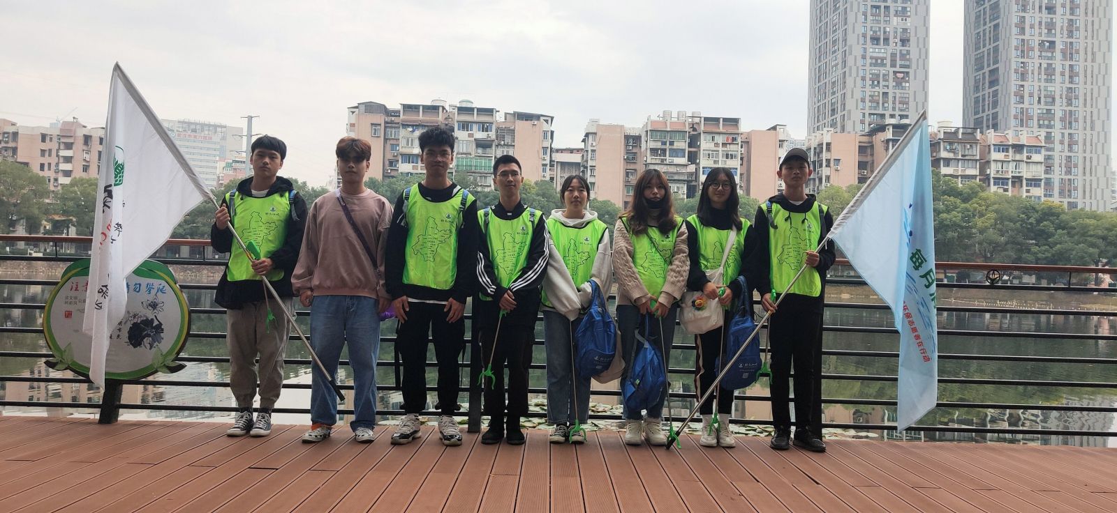 开展活动:武昌理工学院大学生清理鲩子湖西北门垃圾,保护美丽家园。