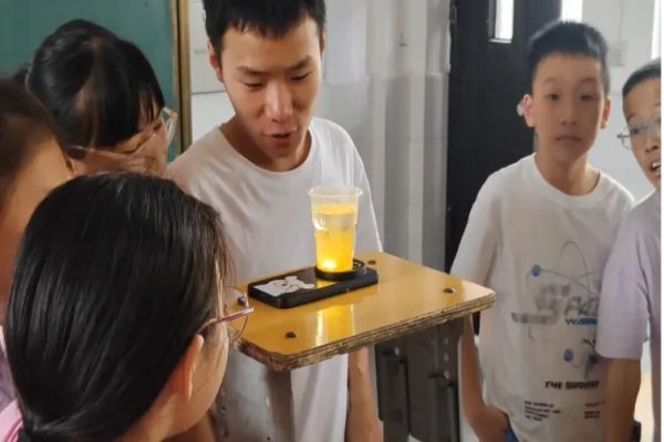 团委网8月11日消息(通讯员 张紫妍 报道)为积极响应国家全面推进素质教育、提升青少年科学素养的政策号召,培养学生对科学的兴趣与探索精神,2025年8月11日“暖心同行”同行云梦向阳志愿服务队队员张峻溢给曙光小学一班同学们带来了一场别开生面的“彩虹流星雨”科学实践课程,带领孩子们开启奇妙的科学探索之旅。