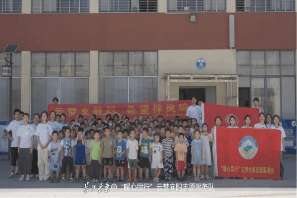 团委网8月25日消息(通讯员 胡胜燃 报道)8月15日,武昌理工学院“暖心同行”云梦向阳志愿服务队以及湖北省云梦县曙光社区联合发起的爱心托管班顺利结营,这场为期31天的公益行动,汇聚大学生志愿者的青春力量,为150名孩子打造了一个充满爱与成长的夏日营地,成为这个季节里温暖且难忘的成长注脚。
