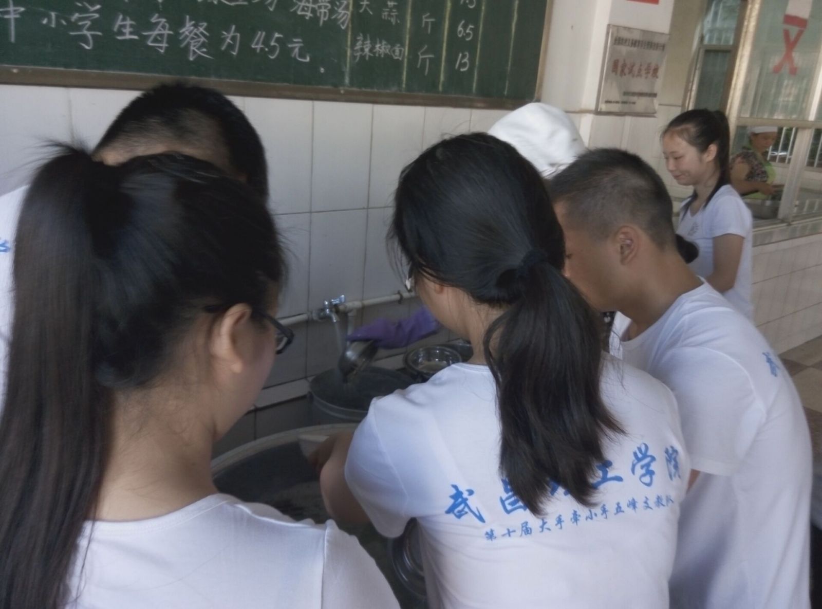 团委网7月10日消息(通讯员 胡宇成 报道)“现在大学生越来越优秀了。”7月9日上午,武昌理工学院第十届大手牵小手五峰支教队在五峰县长乐坪小学开始了他们长达一个月的支教献爱心活动,用完餐后,数十名大学生动起手来将用餐完的碗筷洗干净,赢得当地人民一致好评。