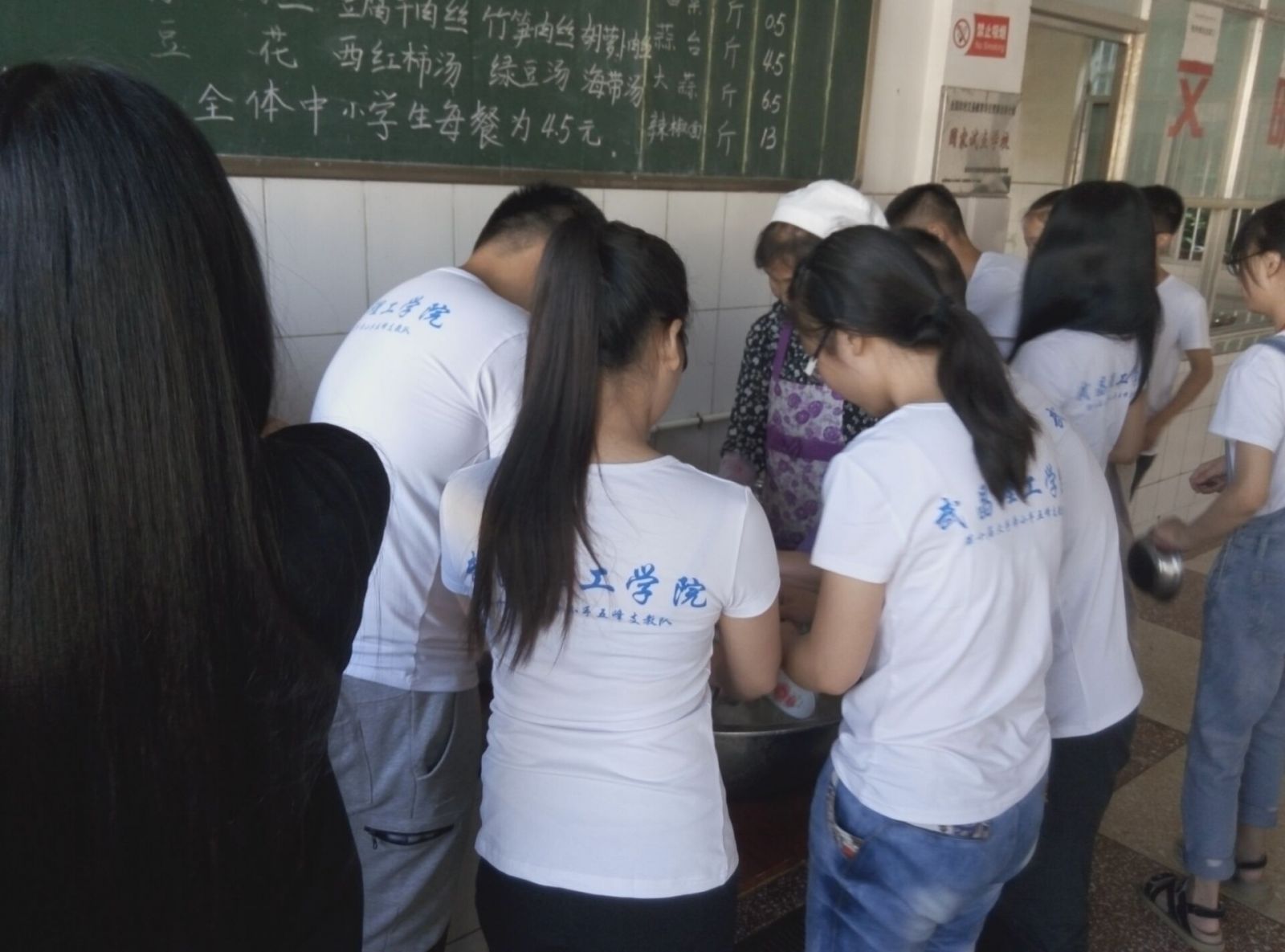负责食堂的张老师说:“每天学校都会有一百四、五十人来食堂用餐,大部分学生由于离家比较远,选择在校进餐,看着支教的大学生这么热心,我们很感谢,我们都希望孩子们能健康成长。”(完)