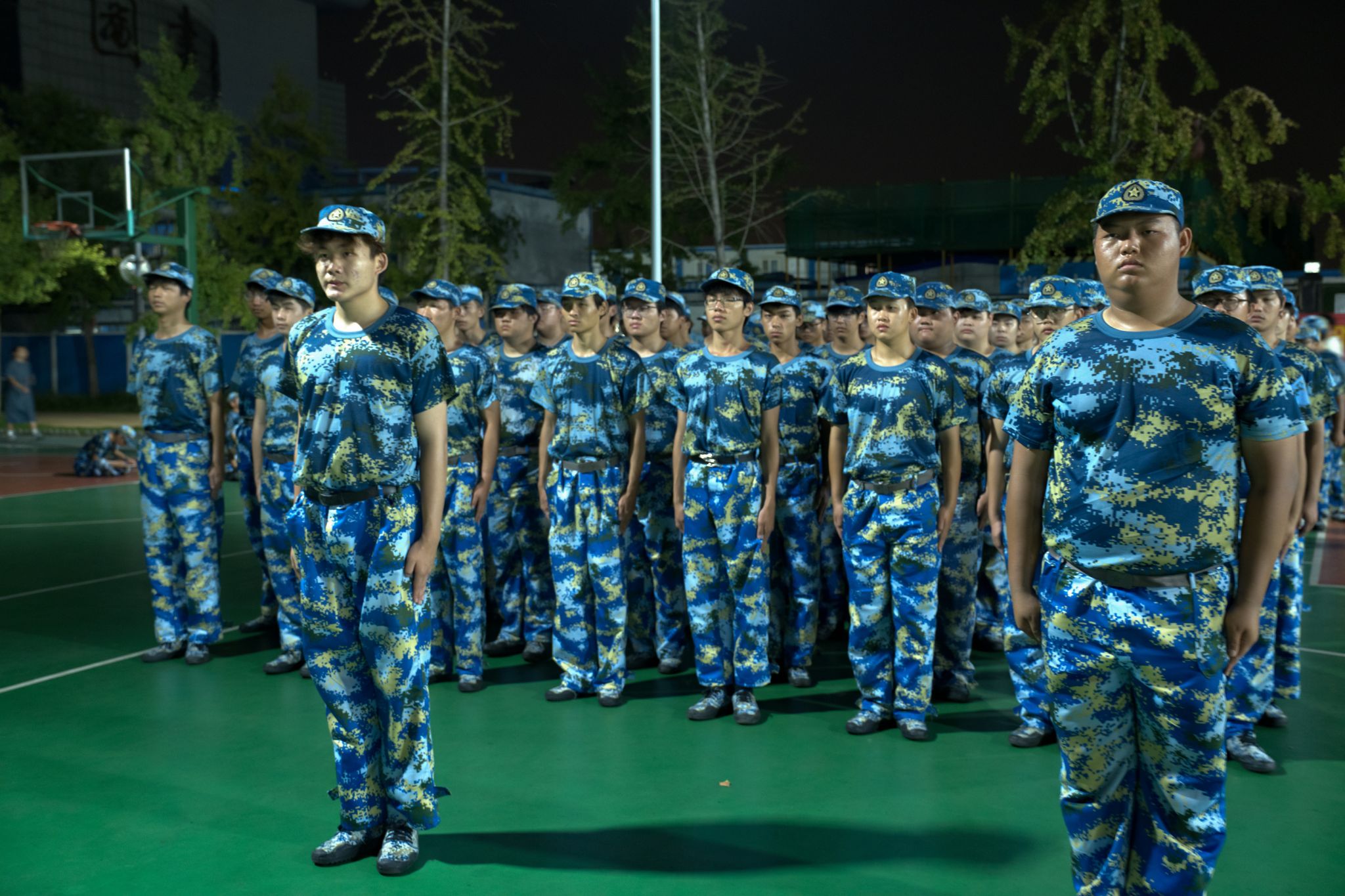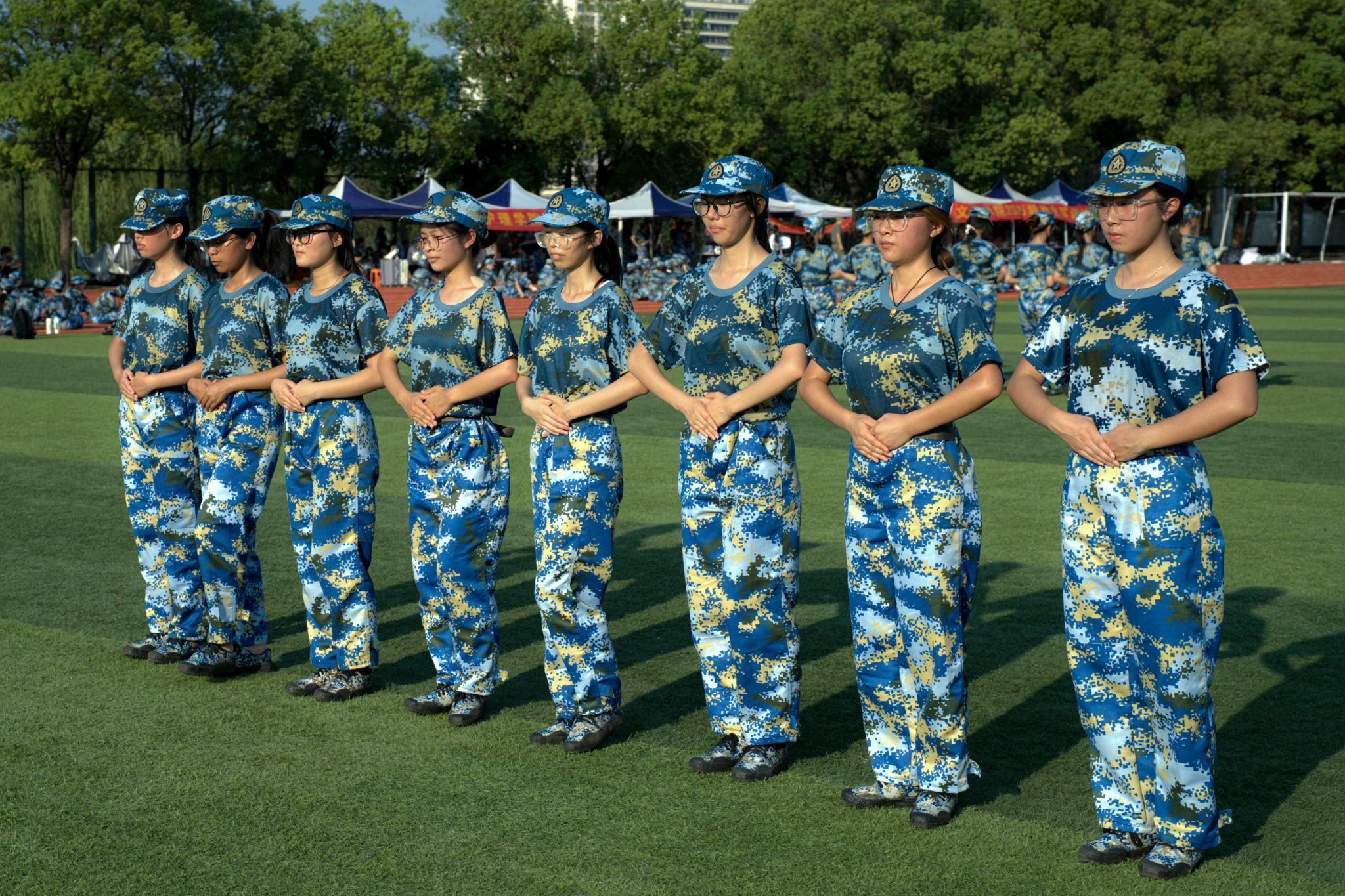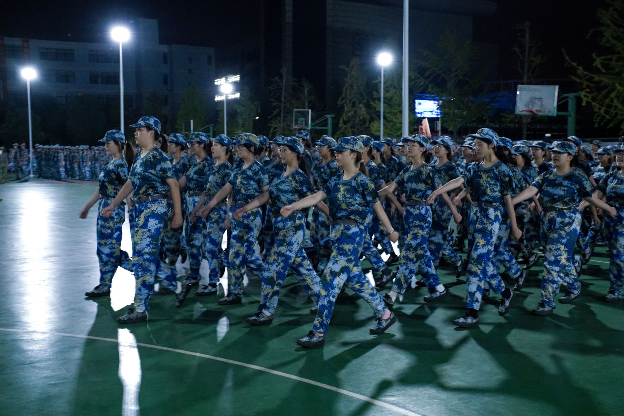 晚上七点,训练场上已响起铿锵有力的口令声。在各连队教官的指挥下,同学们有序展开军姿、队列等基础训练。学生们迷彩着装整齐、精神饱满,在反复练习中掌握动作规范。“抬头挺胸,目光坚定!”教官穿梭于队列中,逐一检查并耐心纠正动作。尽管汗水仍浸湿了衣衫,但所有参训学生始终坚持完成训练任务,展现出顽强拼搏的青春风貌。