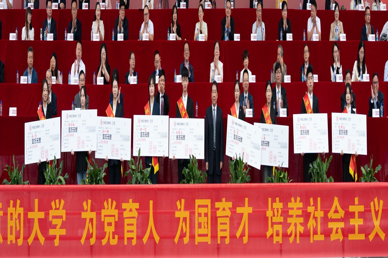 表彰环节中,党委书记高建勋教授宣读2024-2025学年度学生表彰决定,主席台领导为优秀个人和集体代表颁奖。党委副书记、副校长林娟教授宣读2025学年度“元璋创新奖学金”表彰决定,学校顾问王元璋教授为获奖学生颁奖。常务副校长别业舫教授宣读学校2024-2025学年度“校长奖”表彰决定,校长赵作斌教授为获得“校长奖”的学生颁奖。其中,获得“校长奖”的学生分别是计科2209班刘蕤豪、影制2102班吴彤、工商2101班李宇泰、建筑学2101班尚一柳、工商2102班黄一雯、大数据2102班晏雯、计科2103班田淼、软工2103班曹嘉骏和护理学2101班柯梦灿。