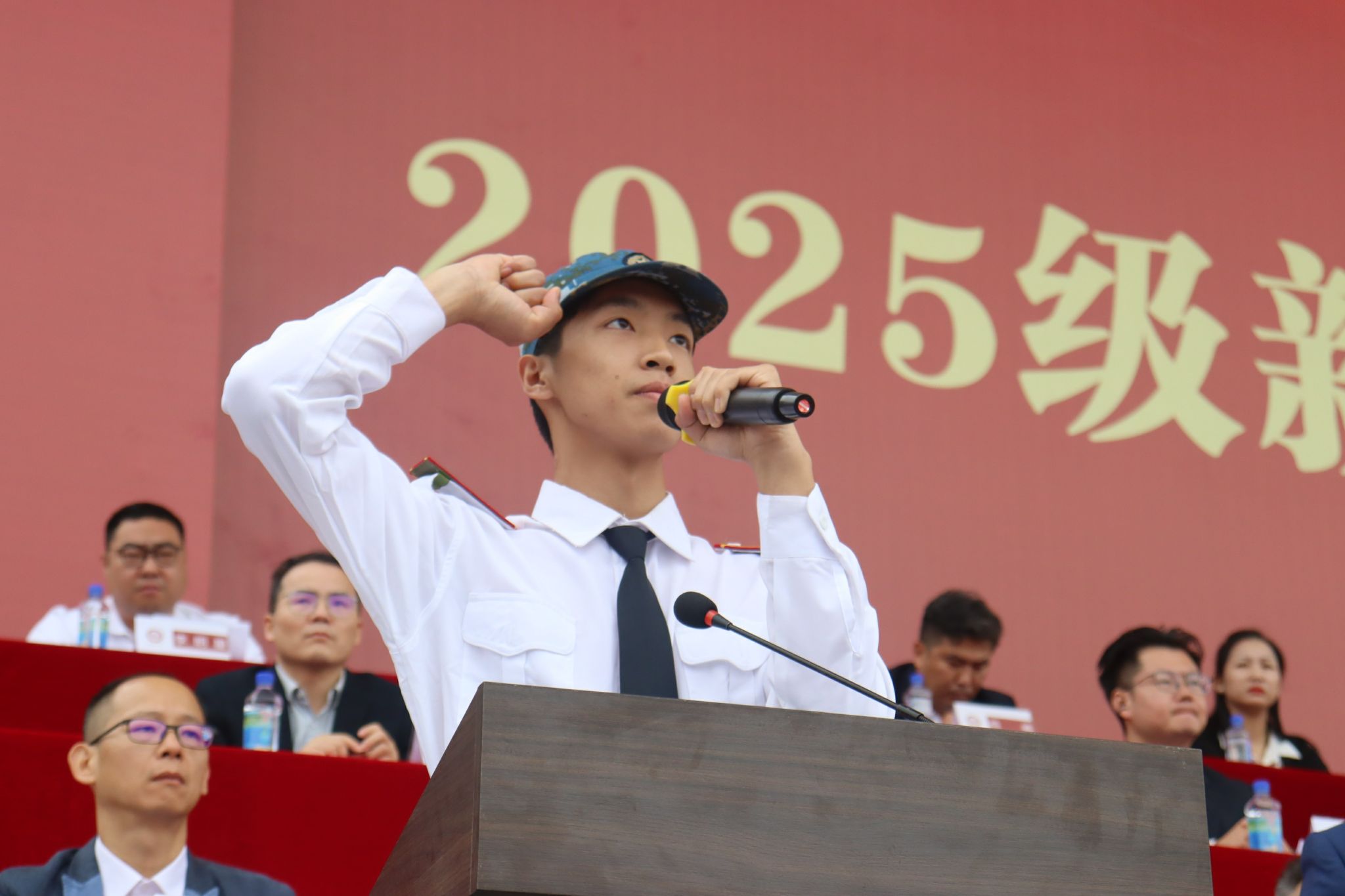 开学典礼上,校长赵作斌教授发表重要讲话。他首先代表全校师生对新生们表示热烈的欢迎,并提出四点要求:一是高考成绩仅代表过去,鼓励新生以新心态开启大学生活;二是大学需转变学习方式,主动探究,依托学校“开发、内化、创新”教育模式实现自我成长;三是驳斥“读书无用论”观念,主动适应人工智能时代,掌握新技术,拓展跨学科知识;四是控制寝室停留时间,多参与课堂、图书馆及社团活动,全面提升综合素质。赵作斌教授的讲话既饱含对新生的期许,也为其大学成长提供了清晰思路,让在场新生对未来学习生活充满信心,更坚定了以奋斗姿态书写青春篇章的决心。活动最后,由影视传媒学院播音2501班崔竣皓同学带领2025级全体新生庄严宣誓。仪式在全体人员齐唱中国人民解放军军歌中落下帷幕。