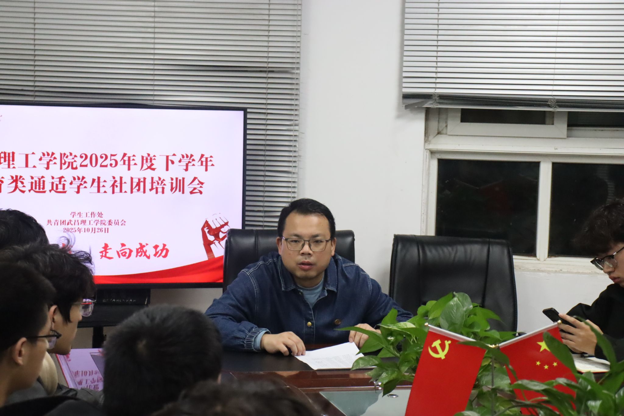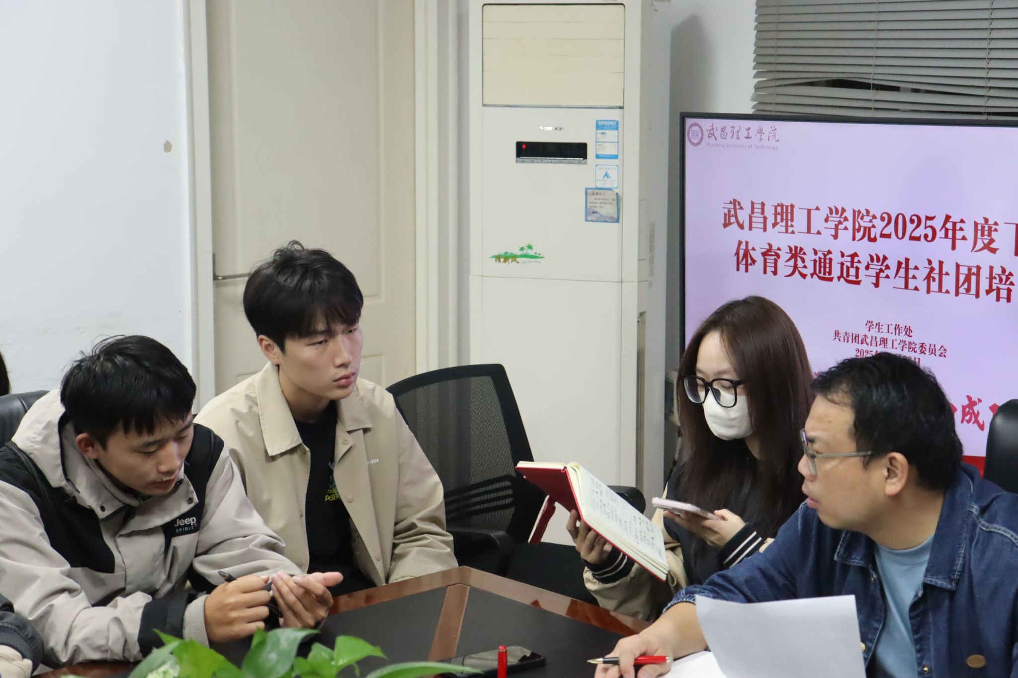团委网10月26日消息(记者 易成豪 洪斯宇 见习记者 杨冬春 鄢李洲 报道 )为破解体育类社团发展瓶颈,提升社团运营管理水平,丰富校园体育文化生活,武昌理工学院于10月26日晚在行政楼312会议室召开了体育类社团专项会议。出席本次会议的领导有校长助理李金永、校团委书记杨瑞、社团指导老师董雨,此外,各体育类社团社长、协会会长也悉数到场。