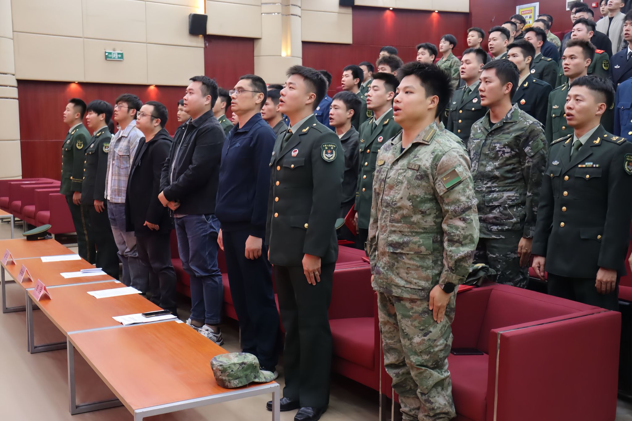 高亢热烈的《中国人民解放军军歌》旋律响起,全体人员庄严肃立,齐声高唱。歌毕,与会领导与全体预备连成员共同合影留念,为此次大会画下圆满句号。