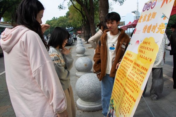 活动结束后,记者采访到汉语言2306班朱政同学,询问其关于此次活动的感想,他表示“我们希望通过这样的活动,让同学们不仅了解重阳节的来历,更能在实践中体会‘老吾老以及人之老’的文化内核,学会感恩,懂得陪伴。”