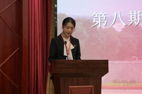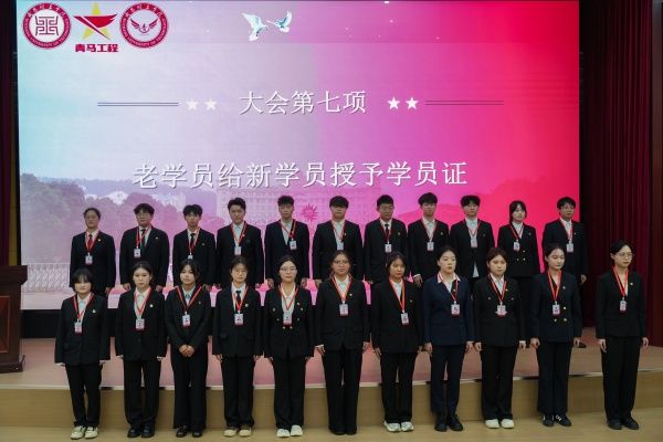 表彰结束后,第八期优秀学员代表陈家琪同学接续发言。她强调,我们应秉持青马精神,努力成长为有理想、敢担当、能吃苦、肯奋斗的新时代青年,为实现民族复兴贡献青春力量。随后,第八期青马班学员为第九期青马班学员授予学员证,将青马精神传递。