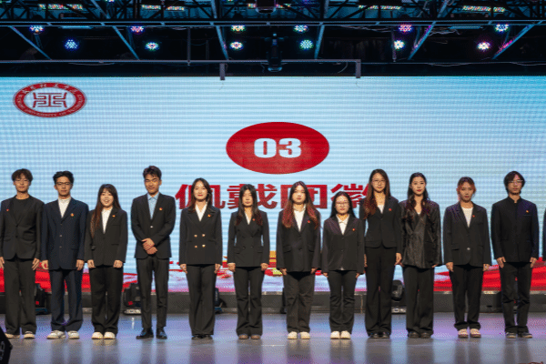 入团仪式在庄严的团歌声中正式拉开序幕,新团员们纷纷以昂扬庄重的姿态迎接这一重要时刻。校团委李玮书记宣读《关于2025年批准李明杰等575名优秀学生入团的决定》的文件后,各学院团委学生副书记为新团员代表佩戴团徽,借此让新团员们认识到,授予团徽既是对每位团员信任的体现,又对他们提出更高的标准。随后,入团宣誓环节由校团委学生副书记郑玲峰带领,新团员们右手握拳,目光如炬,面向鲜红的团旗与团徽,庄严地宣读入团誓词。