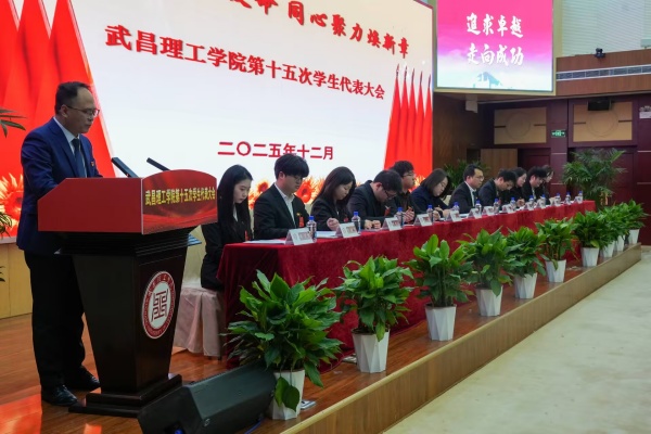 团委网12月20日消息(记者 陈可欣 陈俊彤 邢鲍博 见习记者 鄢李洲 报道)为深入贯彻落实党的二十届四中全会精神,积极回应时代号召,勇于面对时代挑战,进一步增强学生团队凝聚力,12月20日,武昌理工学院第十五次学生代表大会在图书馆六楼报告厅圆满落幕。与会领导包括党委常委、校长助理李金永,党委委员、校团委书记杨瑞,各学院团委书记以及校团委指导老师董雨。此外,武昌理工学院第十四届学生会主席团成员和各学院青年学生代表也参加了本次会议。闭幕式由第十四届学生会执行主席刘昱忻主持。