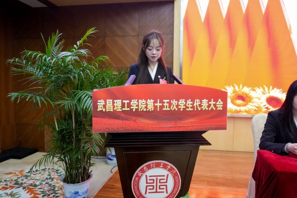 会议伊始,杨瑞书记郑重宣读了《武昌理工学院第十五次学生代表大会关于武昌理工学院学生会工作报告的决议》。该报告紧扣学生会改革要求与学校实际情况,全面总结了过去一年的工作成果,精准描绘了未来发展的宏伟蓝图,具有重要的指导意义。过去一年,在校党委的领导与校团委的指导下,校学生会坚守服务学生的初心,在思想引领、成长助力、权益保障、组织改革以及对外交流等方面取得了创新性突破,有效发挥了学校与学生之间的桥梁纽带作用。