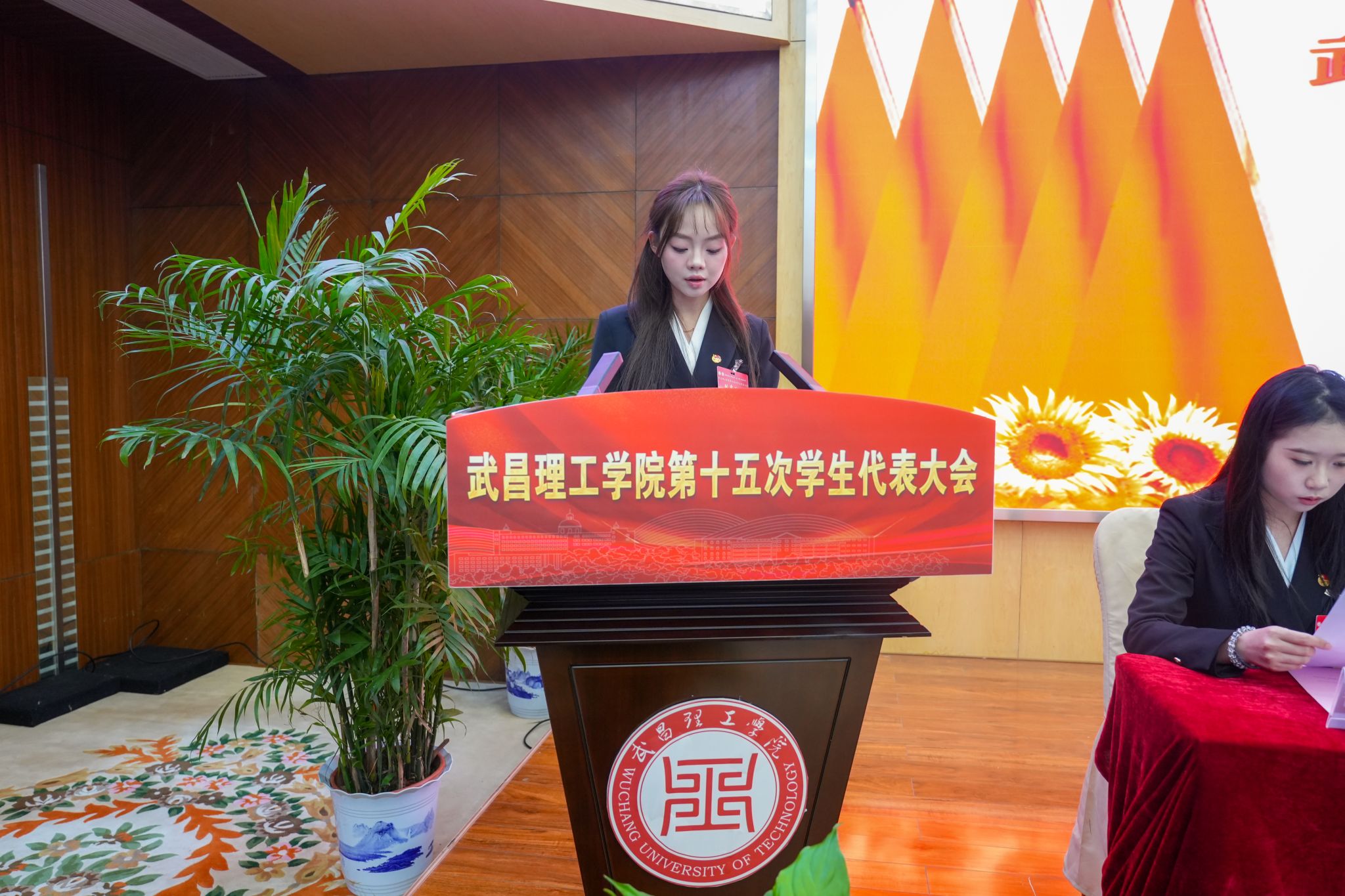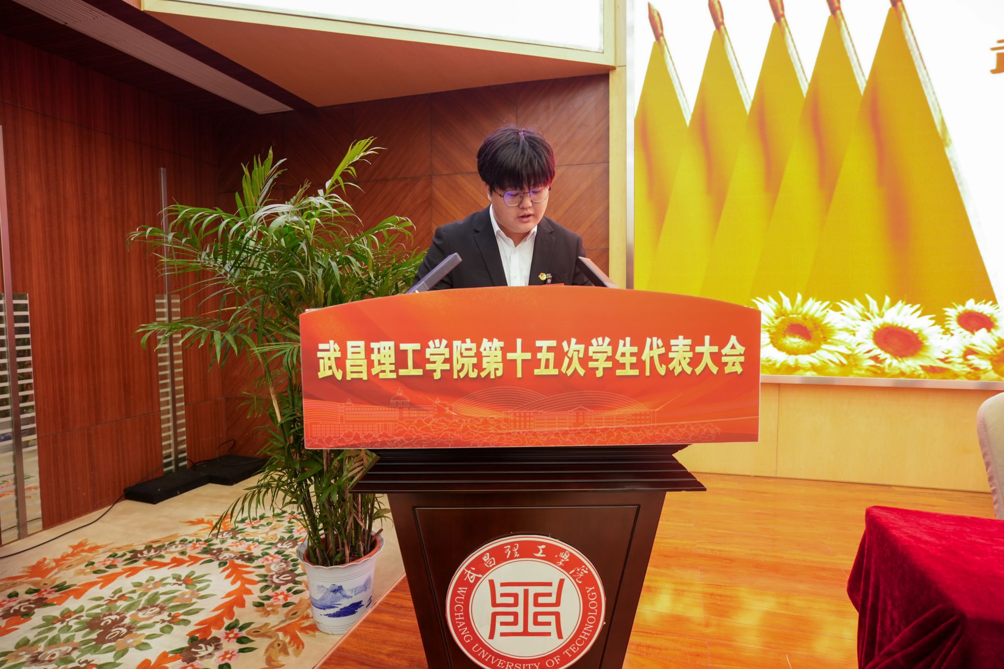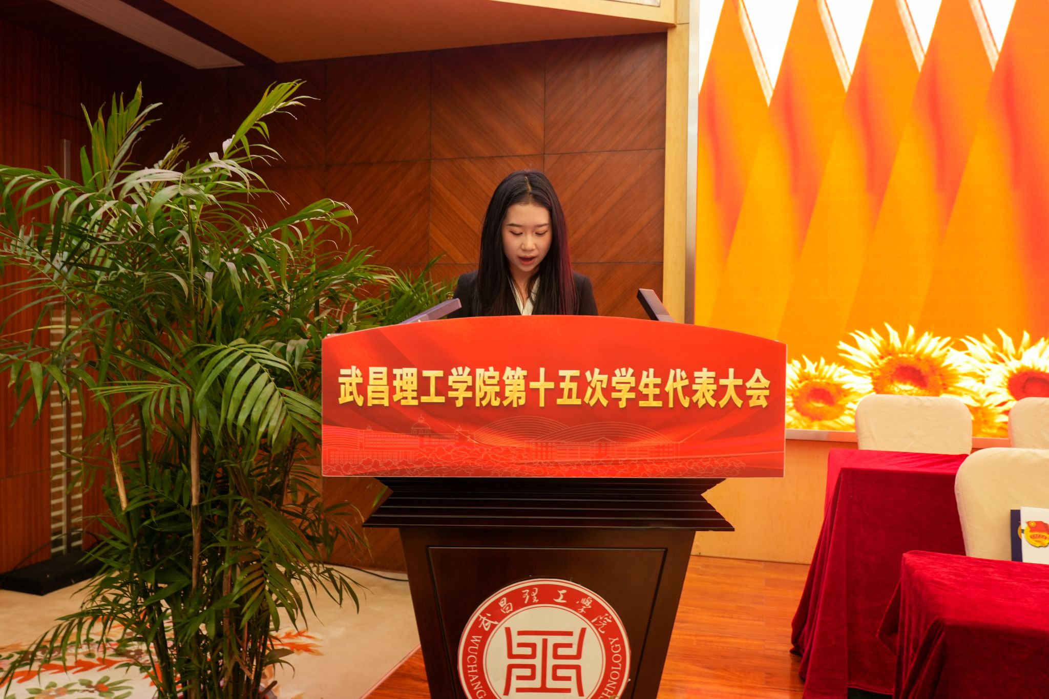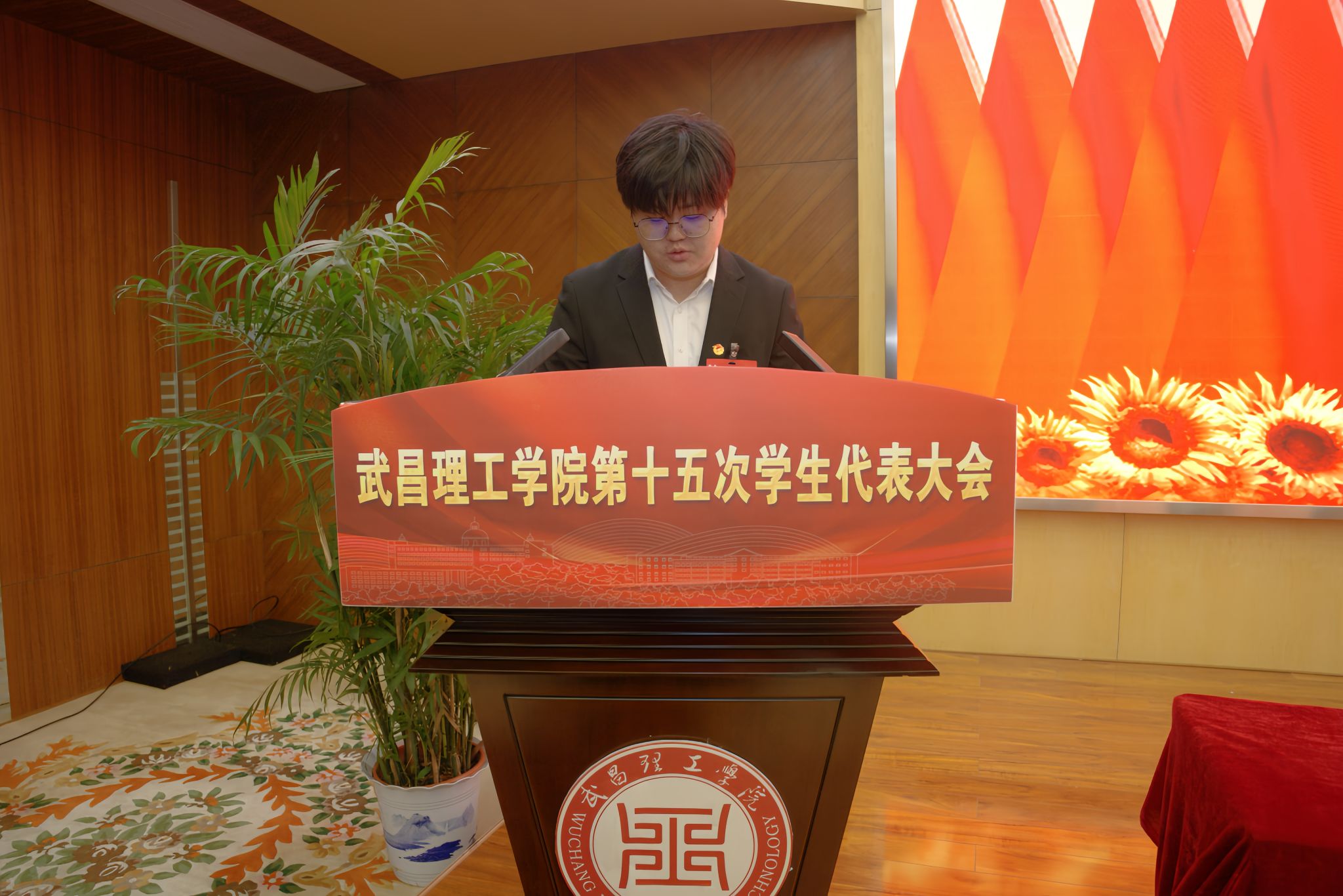 杨瑞书记郑重宣读《武昌理工学院第十五届学生代表大会关于武昌理工学院学生会工作报告的决议》