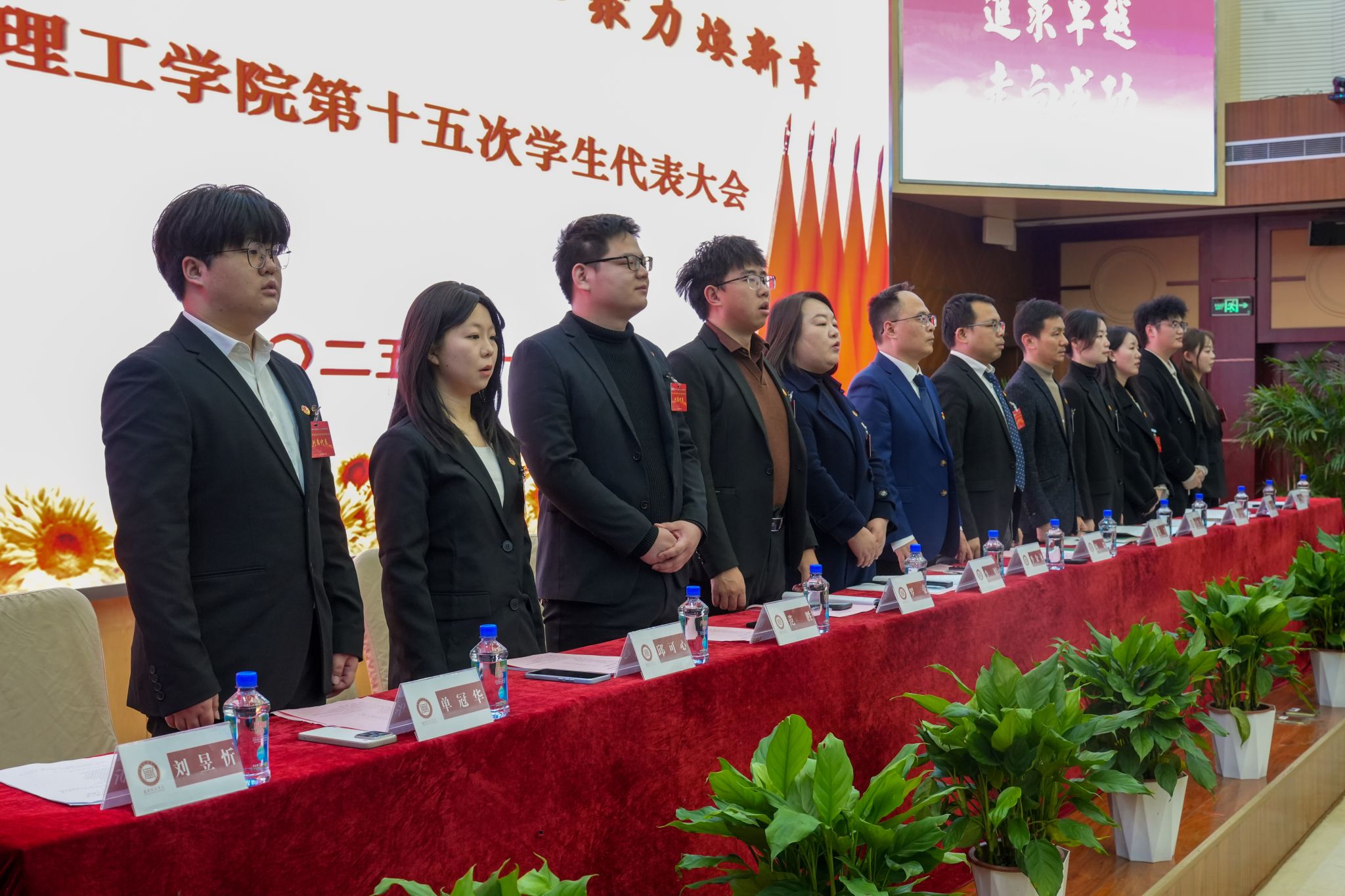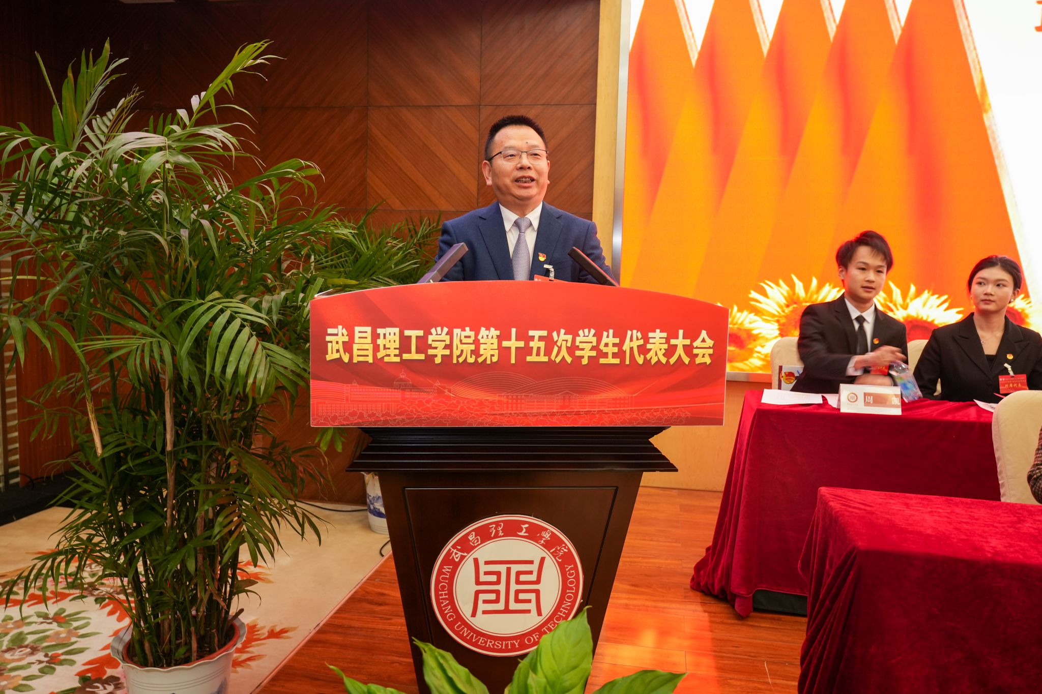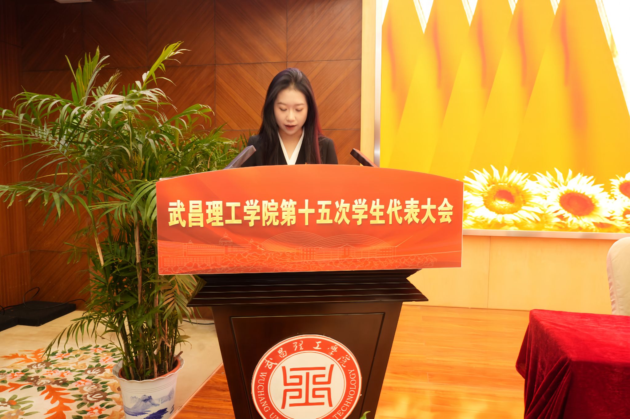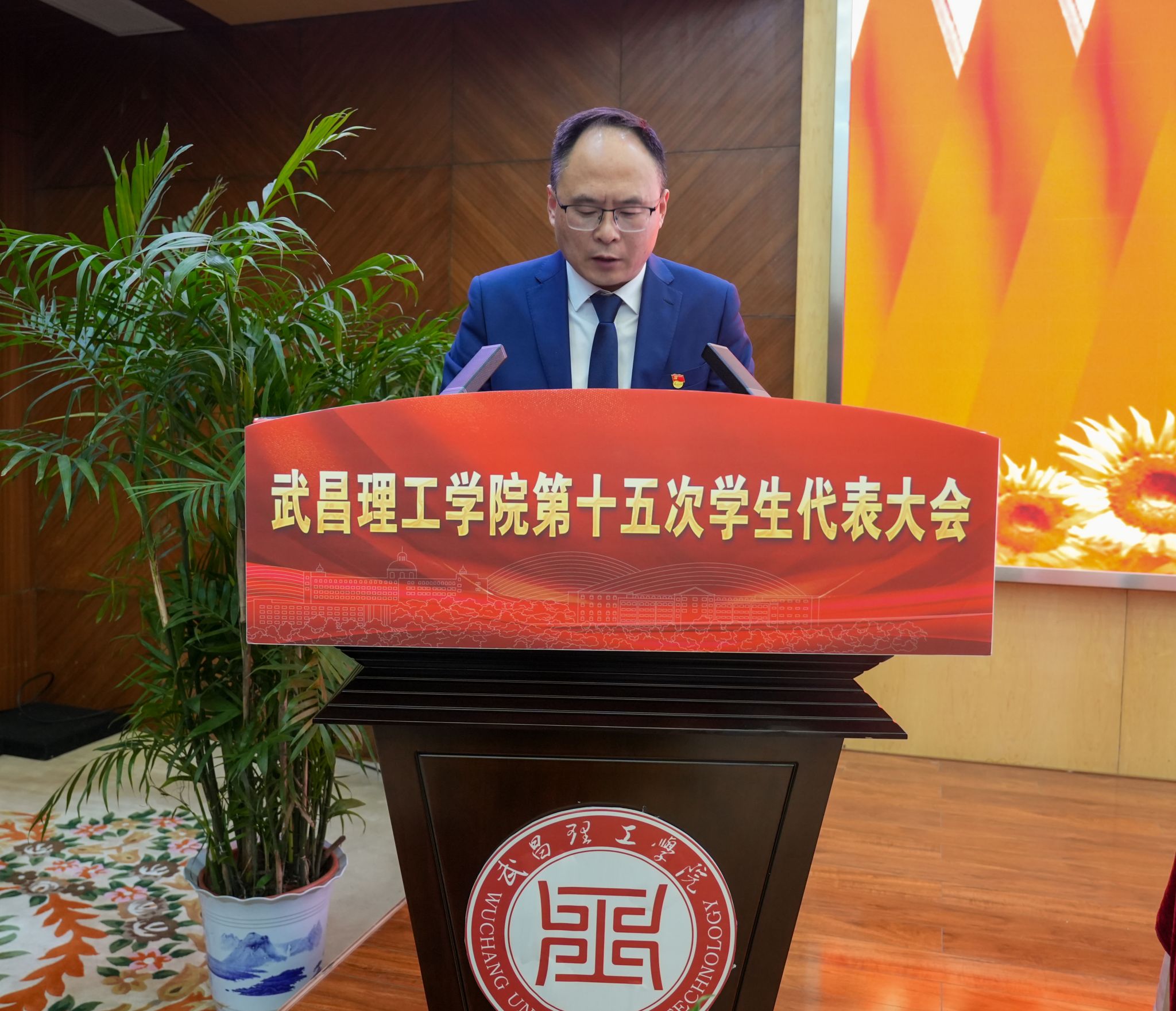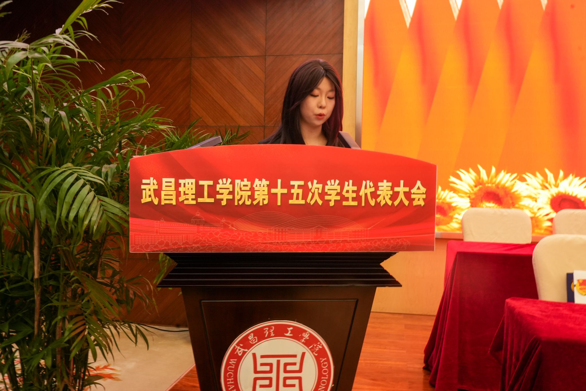 杨瑞书记郑重宣读《武昌理工学院第十五届学生代表大会关于武昌理工学院学生会工作报告的决议》