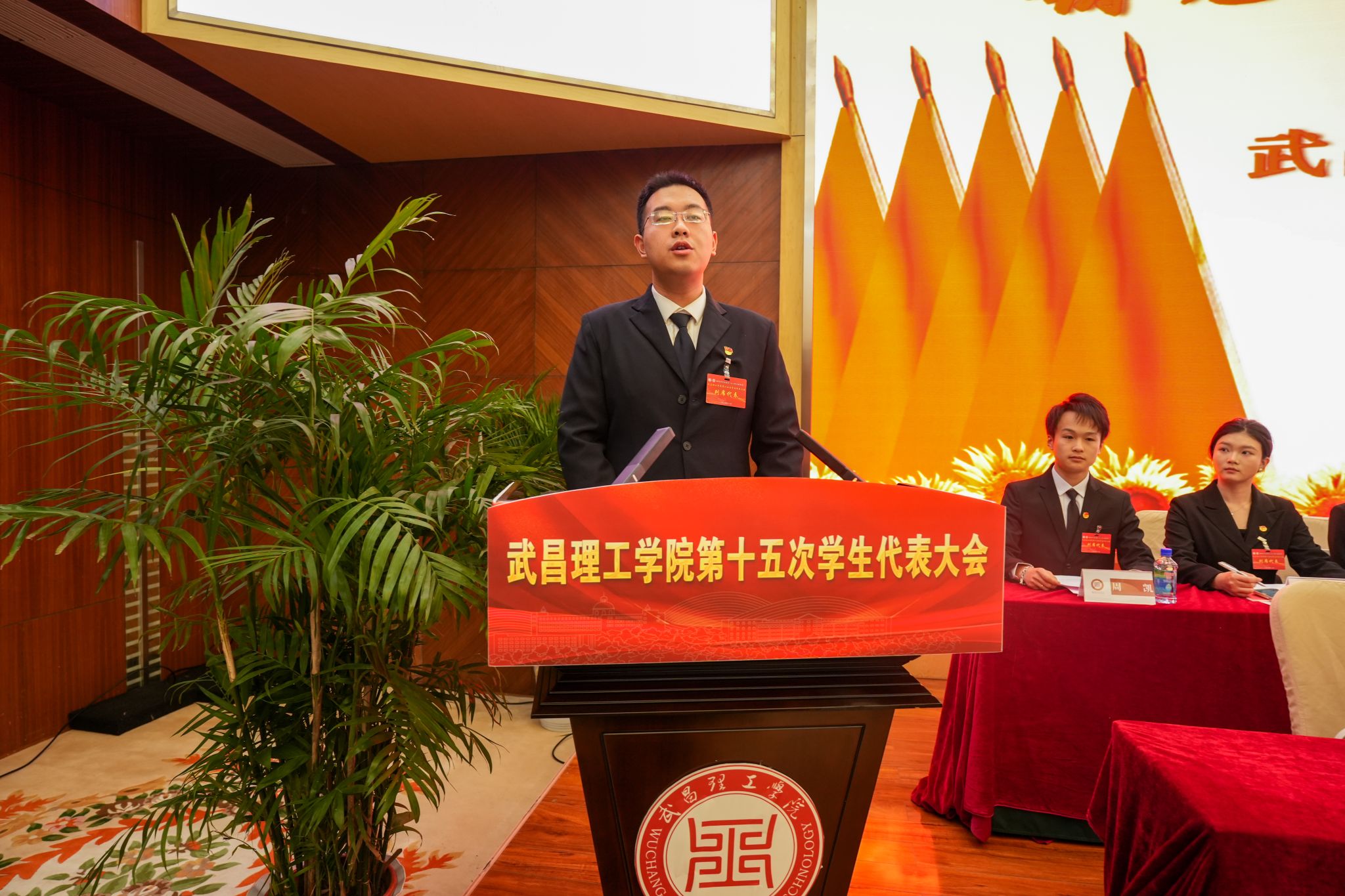 第十四届学生会执行主席刘昱忻同学作武昌理工学院学生会组织工作报告