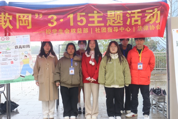 团委网3月15日消息(记者 陈可欣 杨晓慧 见习记者 胡思雨 报道)为提升学生消费安全意识,进一步巩固校园安全防线,增强防范诈骗与依法维权能力,引导学生在理性思考中提高辨别能力,构建诚信守法、安全用网的文明校园环境,3月15日,由共青团武昌理工学院委员会、学生工作处主办,校学生会权益部、社团指导中心、法律协会承办的"慧眼识伪,远离欺罔"3·15消费者权益保护日主题活动在东区文化广场顺利举行。