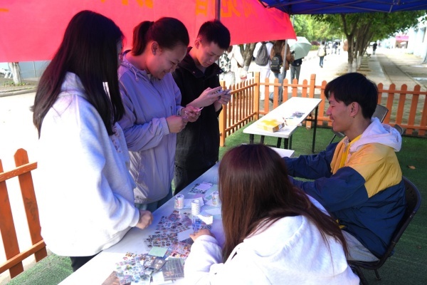 不少师生手持素材反复比对,精心挑选字词和图案。有的同学为了找到契合主题的词句,主动向身边的伙伴寻求帮助,而熟悉拼贴技巧的师生也毫不吝啬地分享经验,手把手指导他人剪裁、拼接的技巧。作品完成后,参与者可以将自己的创意作品带走留念,让这份独特的诗意在生活中延续。