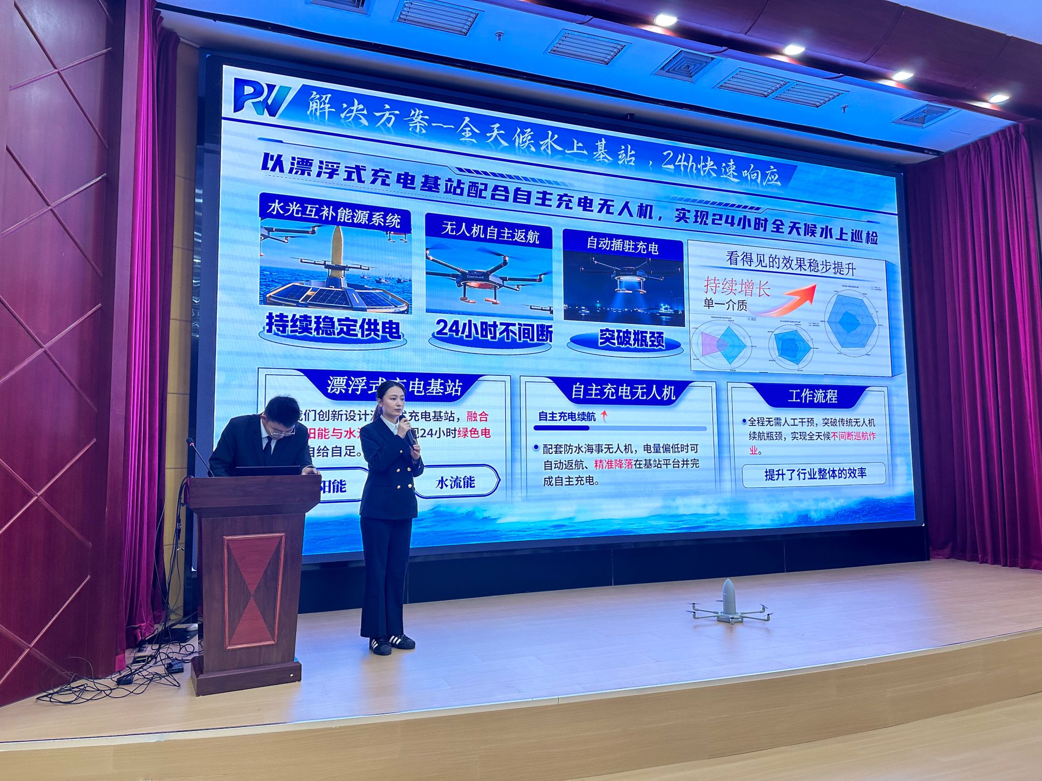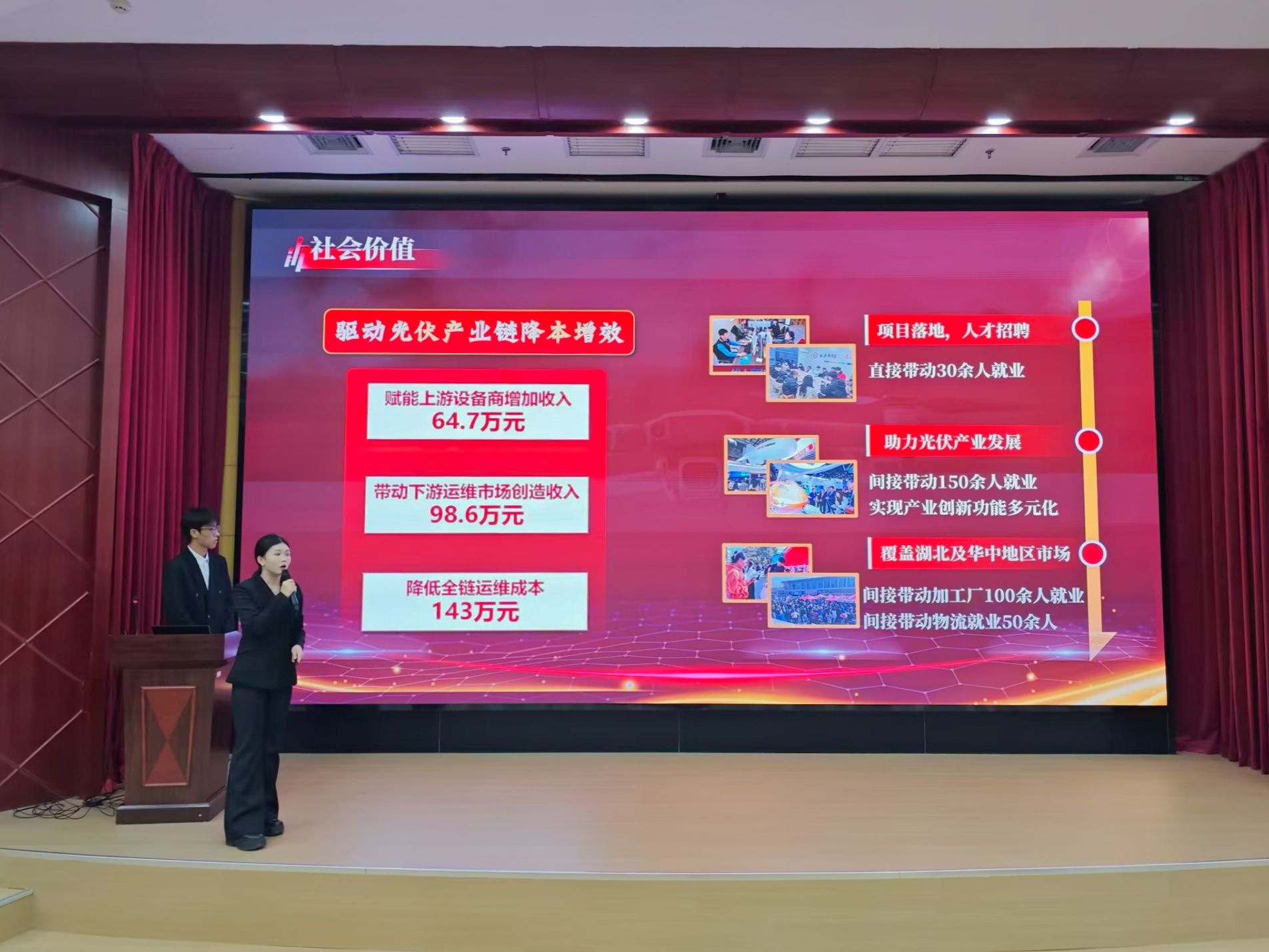 活动现场,各参赛团队围绕项目核心内容展开路演,项目覆盖先进制造、新一代信息技术、生物医药与健康科技、新能源新材料等多个领域,充分展现了武昌理工学子的创新思维与实践能力。“智护帕友”团队深耕帕金森病全周期智能管理领域,依托AIoT技术搭建专业健康监测平台;“巡光净能”团队打造光伏低空巡检清洁一体化平台,攻克光伏运维隐患难寻、效率低下等行业痛点;“筑界瞳心”团队搭建三维数字孪生可视化平台,打破建筑运维数据孤岛壁垒。其余参赛团队也在有限时间内,清晰阐述项目创新理念、技术优势与应用前景,以精炼表达和充分准备,全方位展现项目特色与竞争力。