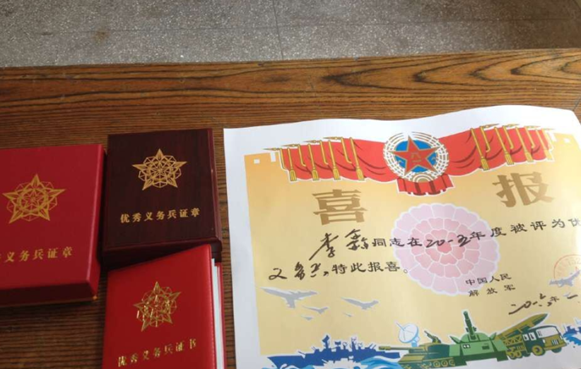在部队的两年时间里,他多次获得表彰,获得过各类荣誉和勋章。有一次由于在执行任务中表现优异获得团嘉奖,并颁发了500元奖金。这些奖金他全部给家人买了礼物邮寄回家,为此他妈妈感动的发微博晒儿子的成长。在部队里,他还参加过跨军区演习和2016年1月深圳光明新区泥石流救援活动等。由于大学读的音乐表演专业,音乐功底深厚的他还是部队中的文艺骨干。