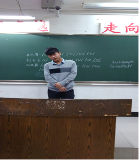 团委网10月5日消息(大学生记者团见习记者 陈晓蕾 报道)近日,商学院610教室早自习出现了这样一幕:一位男生站在讲台上绘声绘色地讲着什么,俨然一副老师模样,教室的其他人则聚精会神地听着,并时不时做些笔记。再一看,黑板上赫然写着一组英语音标以及几个单词。男生走下讲台,同学们便开始早读,书声琅琅。