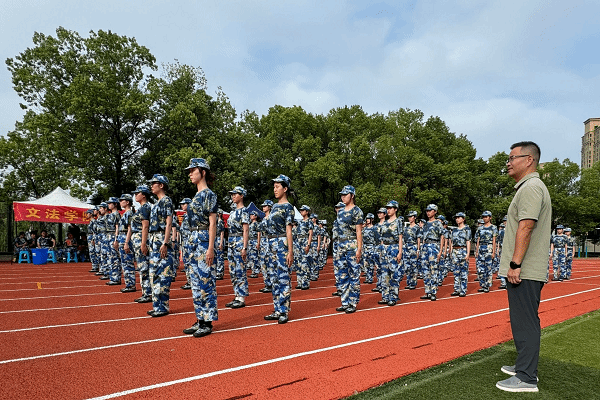 训练场上处处洋溢着蓬勃向上的青春气息,尽管天气炎热,但同学们热情不减、士气高昂。从步伐凌乱到整齐划一,每一次摆臂、每一次踢腿都力求标准,每一声口号都喊得响亮有力。站军姿,他们任凭汗水滑落,身姿挺拔如松;练转体,他们动作干净利落,团队默契渐成;踢正步,他们步伐坚定有力,气势如虹。同学们用实际行动展现了文法学子不畏艰难、纪律严明的优良作风。