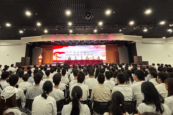 团委网9月23日消息(通讯员 张芳宇 报道)9月23日上午八点,武昌理工学院文法学院2025级新生见面会在庄严的国歌声中正式拉开帷幕。文法学院院长胡德才、教学副院长陶新荣、科研副院长范文琼、党总支书记南小烈、团委书记汪慧蓉、考研专项院长助理张园园等学院领导、新生素质导师、教师代表及全体新生共同参加大会。本次见面会由文法学院团委书记汪慧蓉主持。